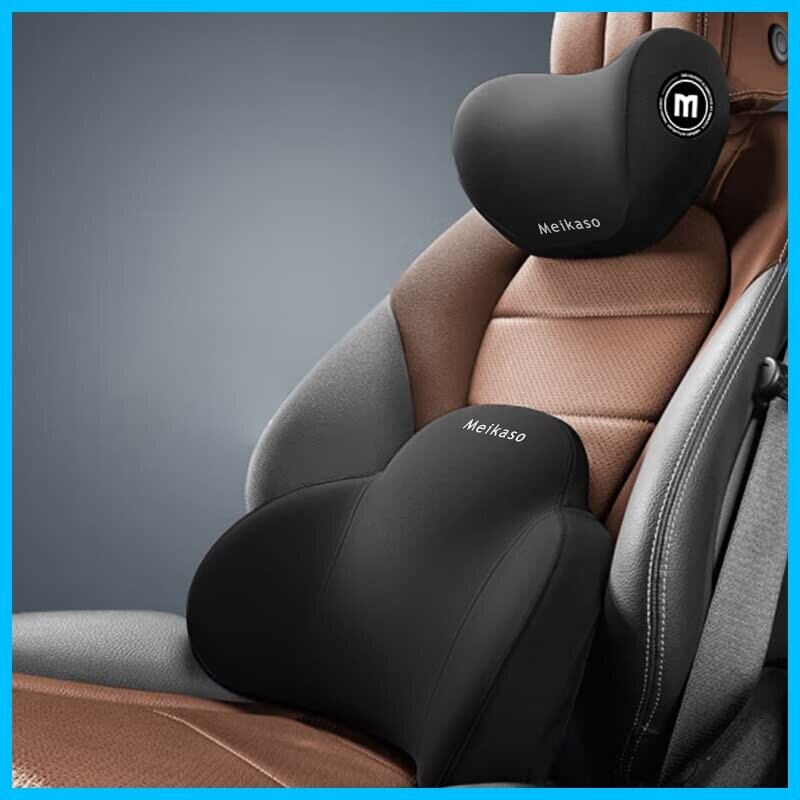 Meikaso 車 腰クッション 背もたれクッション ランバーサポート 低反発 ファッション 車ヘッドレスト 車 ネックピロー 腰当て 車 ネックパッド 長時間運転 腰 サポート 通気性 車用腰枕 快適な腰クッション 車用品/オフィス/自宅用 (腰クッションネックパッド)