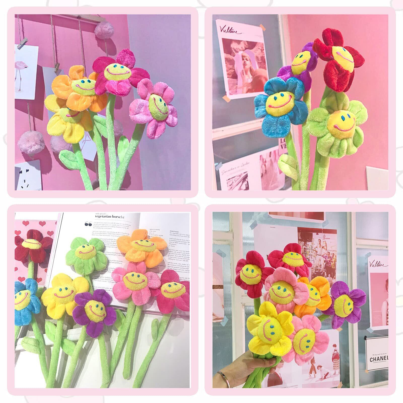 LOZIZI スマイルフラワー ぬいぐるみ花束 韓国 ブーケ 枯れない花 多用途 造花 入園祝い 卒業祝い 誕生日 プレゼント 女性 彼女 友達 お祝い (8色, 8本)