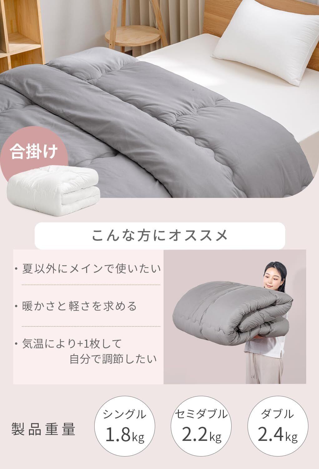 【フワっと軽い!】フワっと軽く体を包んでくれるので、よりリラックスした眠りに。女性でも持ち運びラクラク!来客用にもピッタリです。