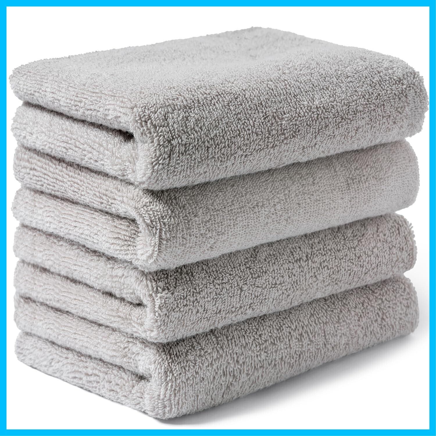 AIFY フェイスタオル 4枚セット 厚手 軽量 速乾 耐久性 ふわふわ 綿 毛落ちしにくい 抗菌 防臭 瞬間吸水 ホテル仕様 無地 髪に優しい 肌触りが良い 赤ちゃん エステ サロン 新生活セット 一人暮らし ギフト 34×80cm ライトグレー