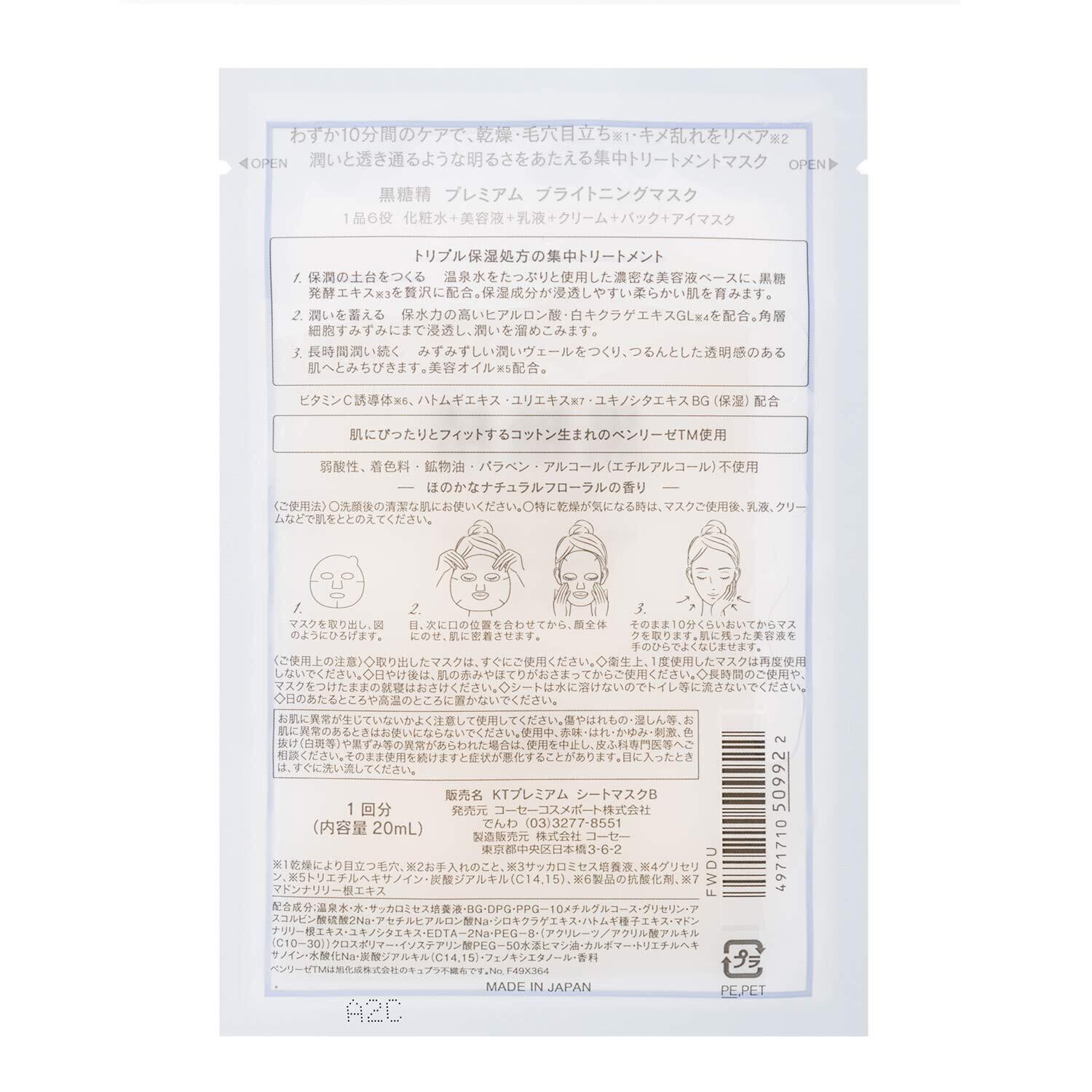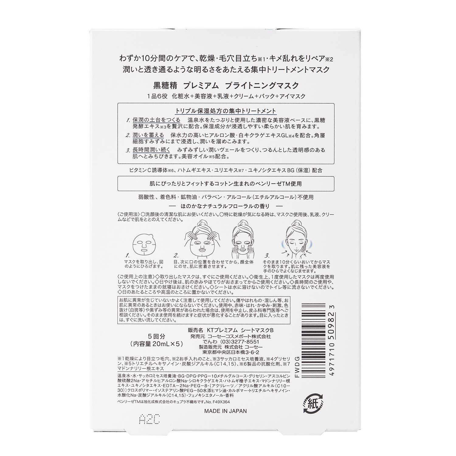 KOSE 黒糖精 プレミアム ブライトニングマスク (透明感) 5枚入 フェイスパック 5枚 (x 1)