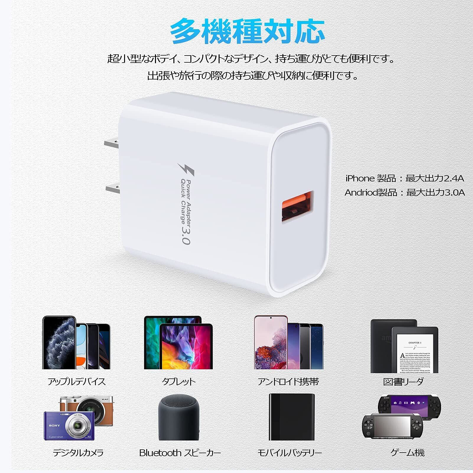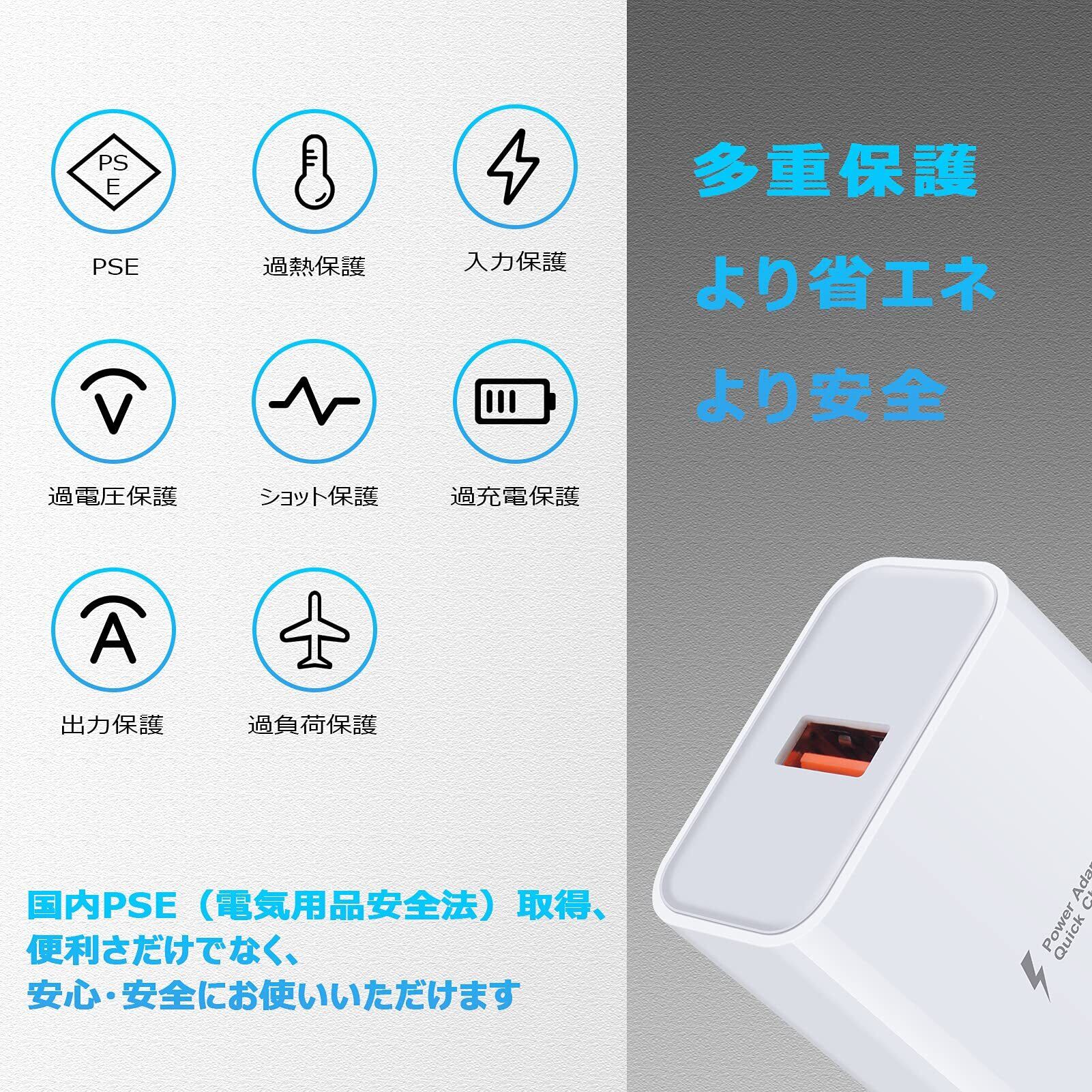 【PSE認証取得・多重保護機能・自動判別機能】:PSE日本電気安全認証を取得し、多重保護システムにより過充電、過放電、過熱、短絡を避けて急速充電アダプターです。 最大出力は18W- 5V/3A, 9V/2A, 12V/1.5Aに、自動判別機能を通して、接続されたデバイスに最適な電流を出力します。