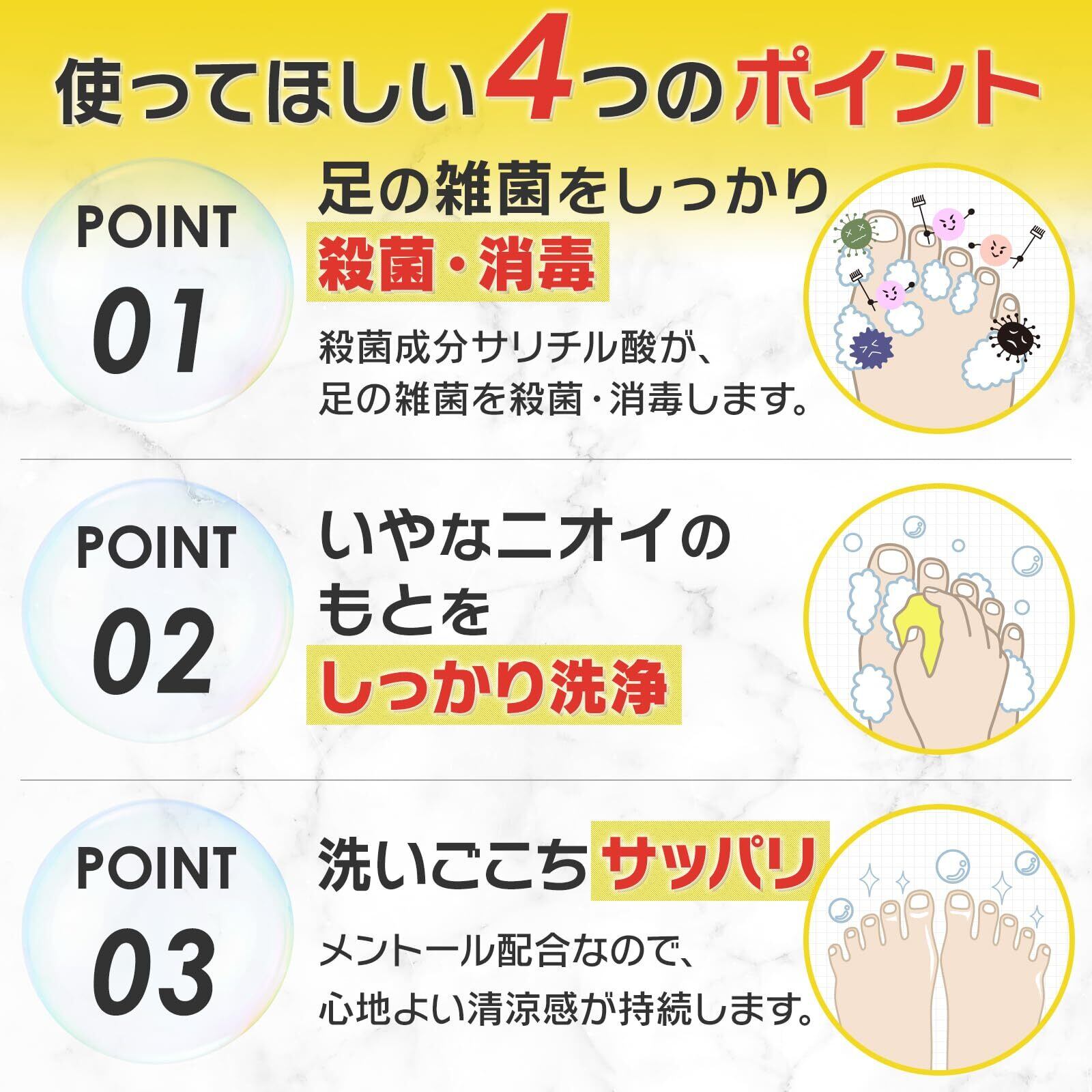 効能・効果:皮膚の清浄・殺菌・消毒。体臭・汗臭及びにきびを防ぐ。
