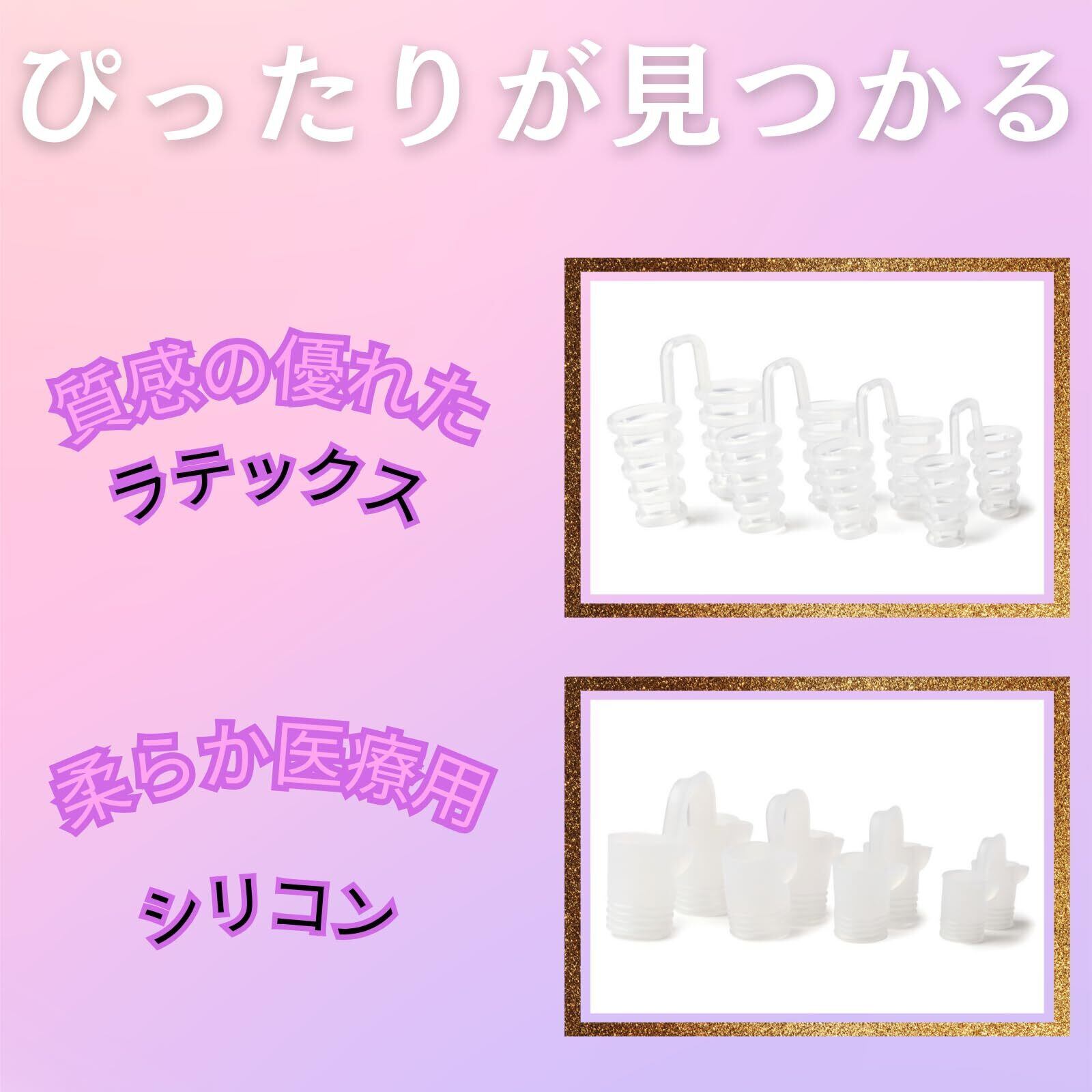 【2種類のTypeをご用意しています】Type1 質感の優れたラテックス素材で鼻にフィットして鼻腔を広げます。Type2 柔らかなシリコン素材を使用しているので、 柔軟性 が優れていてより痛くなりにくいので長時間の使用が可能。