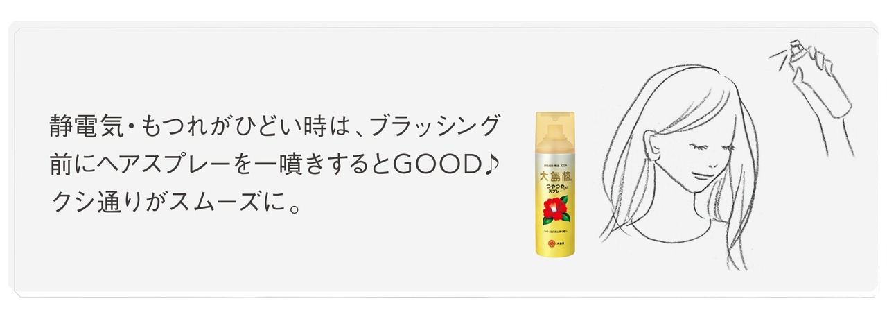 仕上げにスプレーするだけで、まとまりのある艶やかな髪に仕上げます。