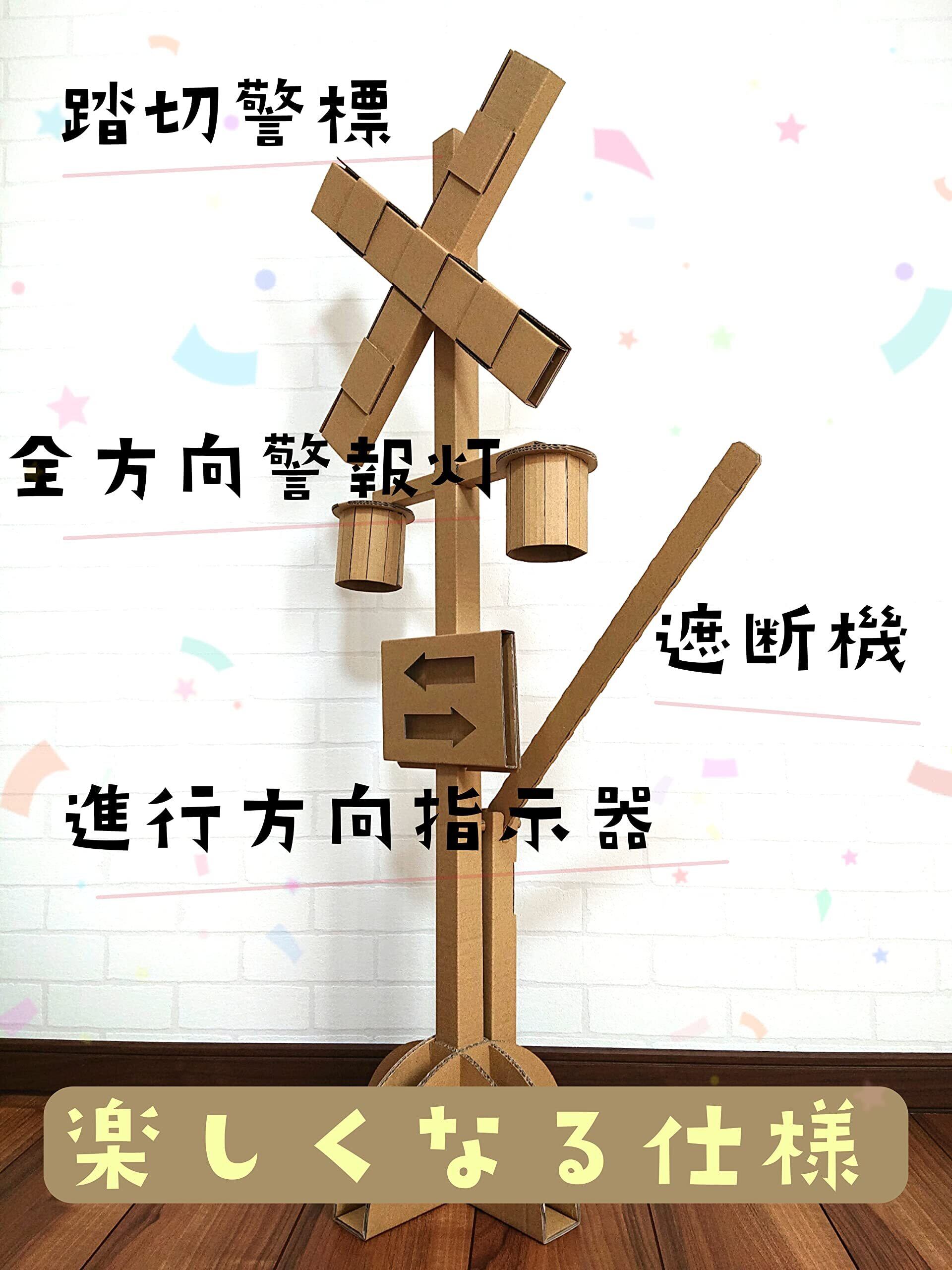 高さ約100センチ 作って遊べる 大きな踏切 子供 知育 玩具 おもちゃ ダンボール クラフト 工作 電車 鉄道 模型
