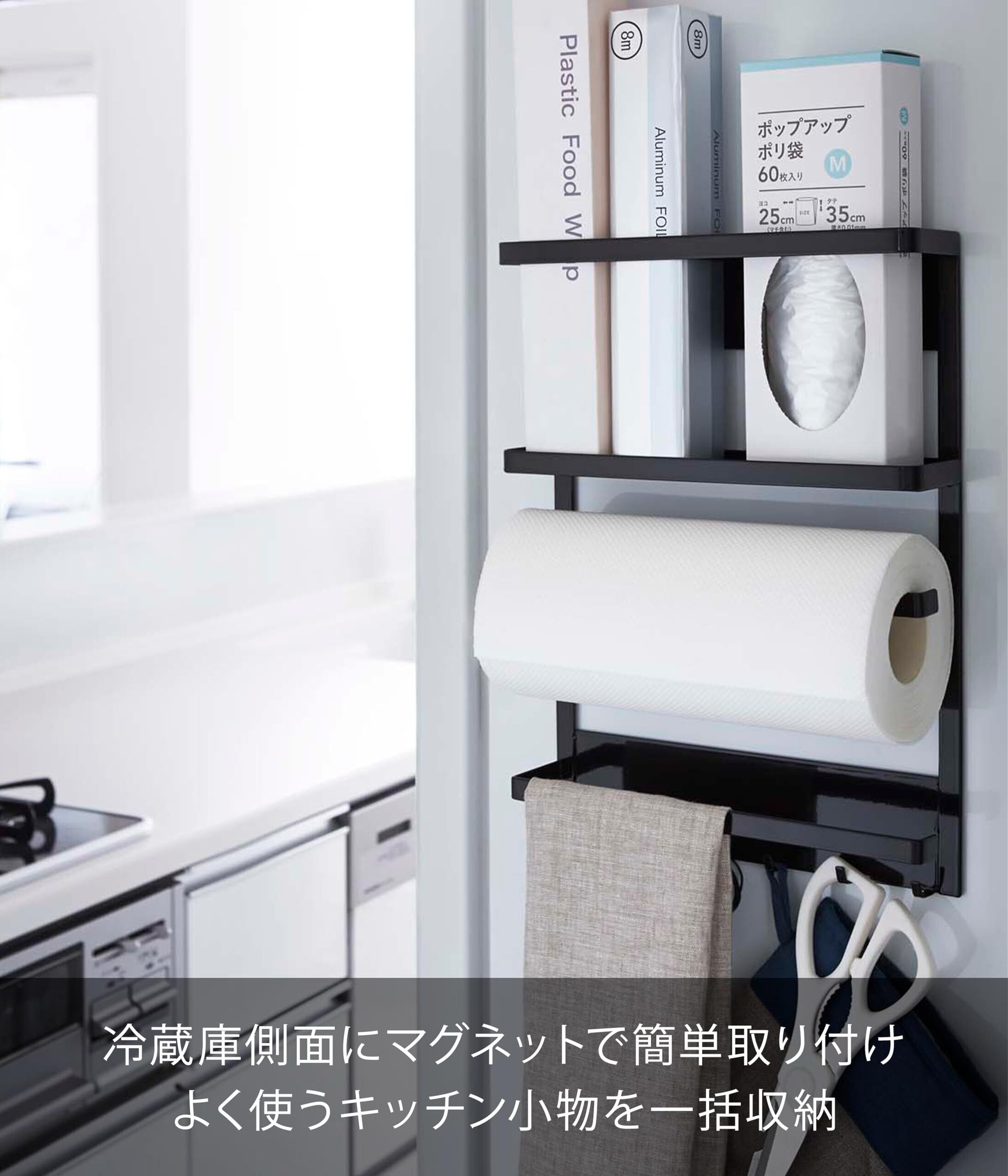 山崎実業(Yamazaki) マグネット 冷蔵庫サイドラック ブラック 約W24.5×D6.5×H34cm タワー tower キッチンペーパーホルダー ラップホルダー 2745