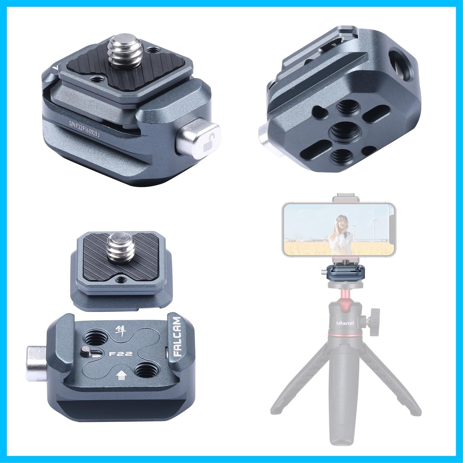 Ulanzi F22クイックシュー クイックリリースプレート 1/4ネジ カメラマウントアダプター 1/4インチネジ、F22 QRシステム 三脚アクセサリー カメラアクセサリー アルミ合金素材 デジタル 一眼レフ 三脚/一脚適用