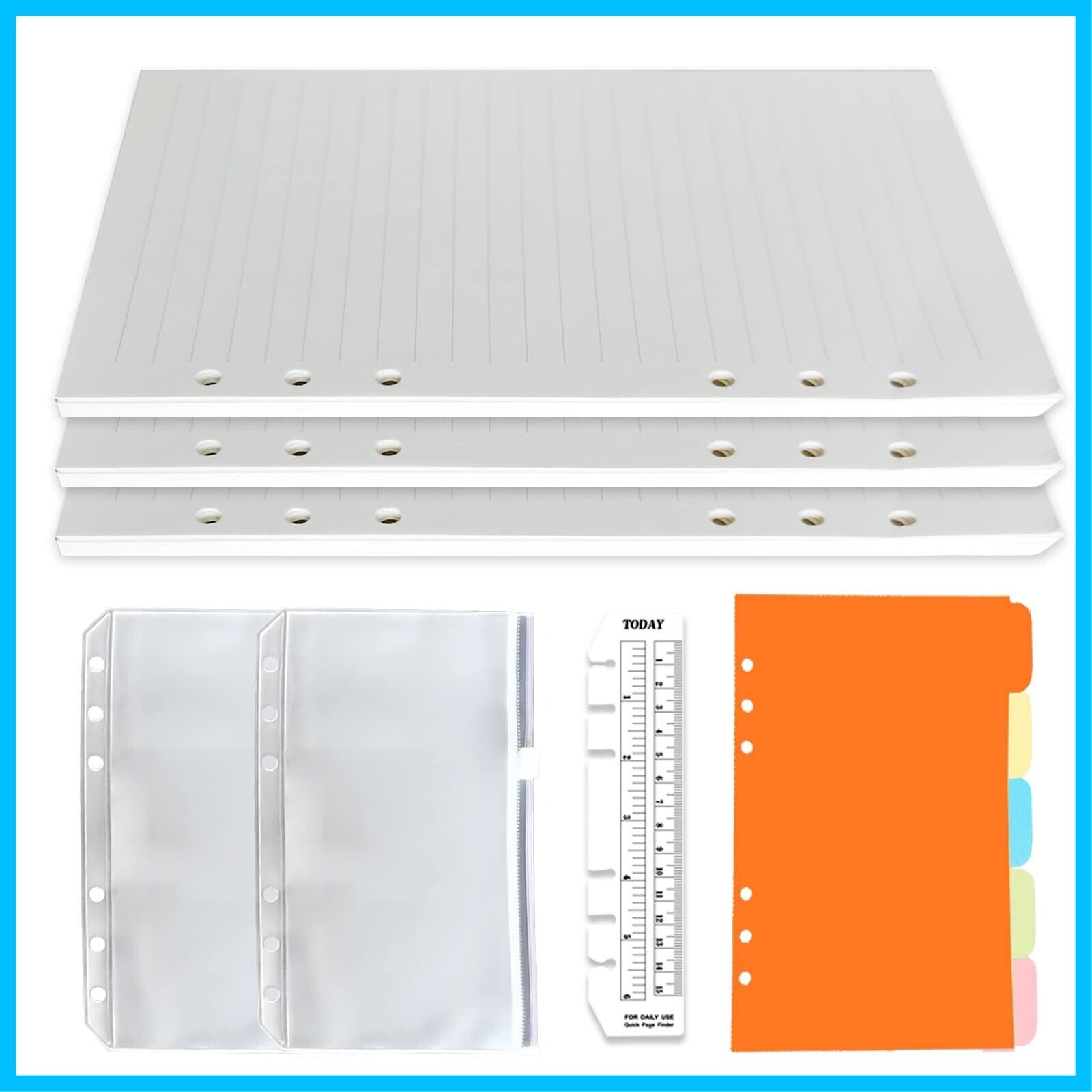 DY.2ten システム手帳リフィル 手帳リフィル A6サイズ 135枚 横罫 ファスナーポケット カラーインデックス しおり定規 a6 リフィル 6穴 3冊 ノート ルーズリーフ用