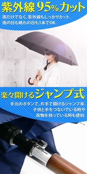 紫外線95%カット:雨だけでなく、紫外線もしっかりカット。 雨の日も晴れの日も1本でOK。 ・高いUVカット性能は証明済み 一般財団法人ボーケン品質評価機構にて、 紫外線遮蔽率をテストしました。 結果は95.8%。 有害な紫外線をしっかりとカットすることが証明されました。 日焼けや皮膚の病気だけではなく、免疫力の低下等も招くと言われている紫外線。 女性はもちろん、男性もしっかりした対策が必要です。 傘なら日差しが気になった時にさすだけで、簡単に紫外線対策ができます。
