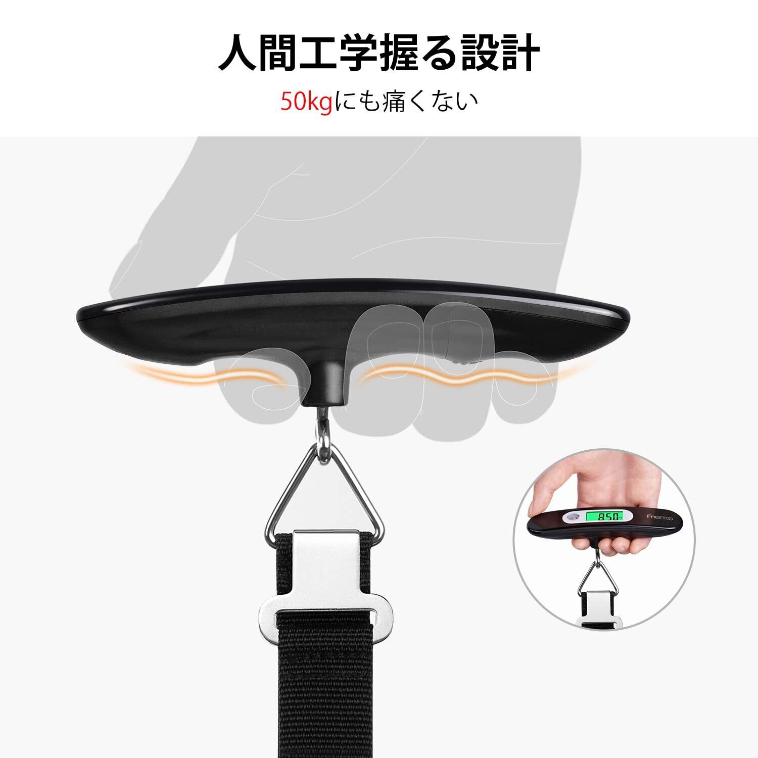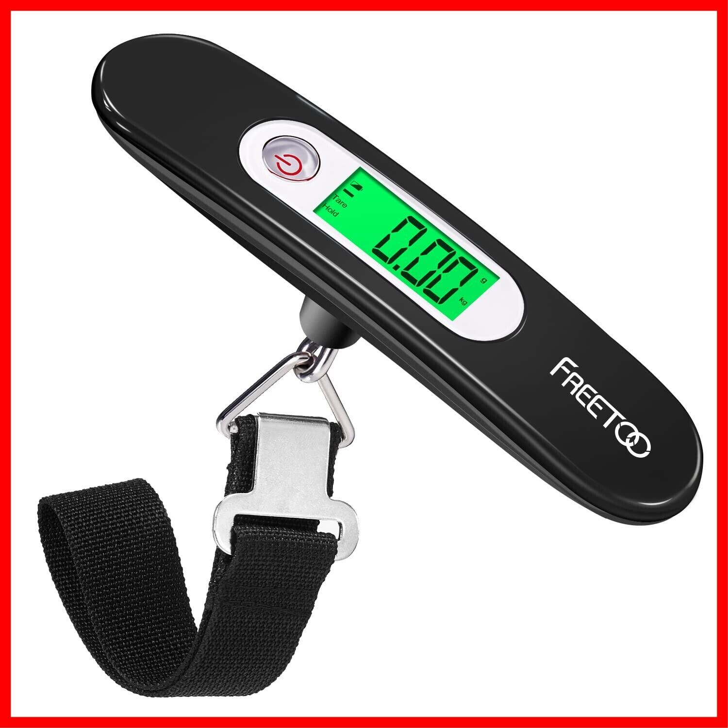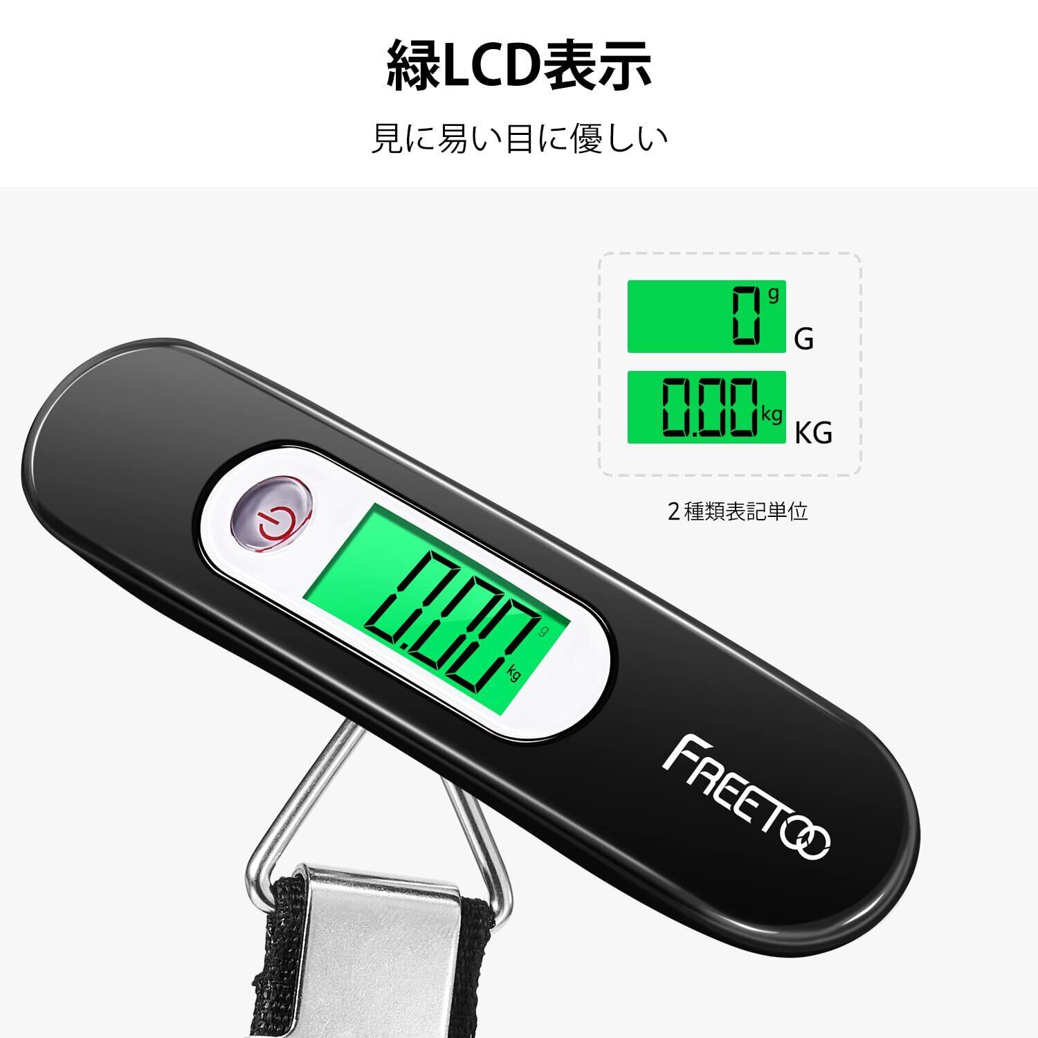 FREETOO 旅行 荷物はかり 二代目チップ ラゲッジスケール LCC用 携帯式 おしゃれ 計量器 デジタル 軽量 風袋引き機能付 (黒)