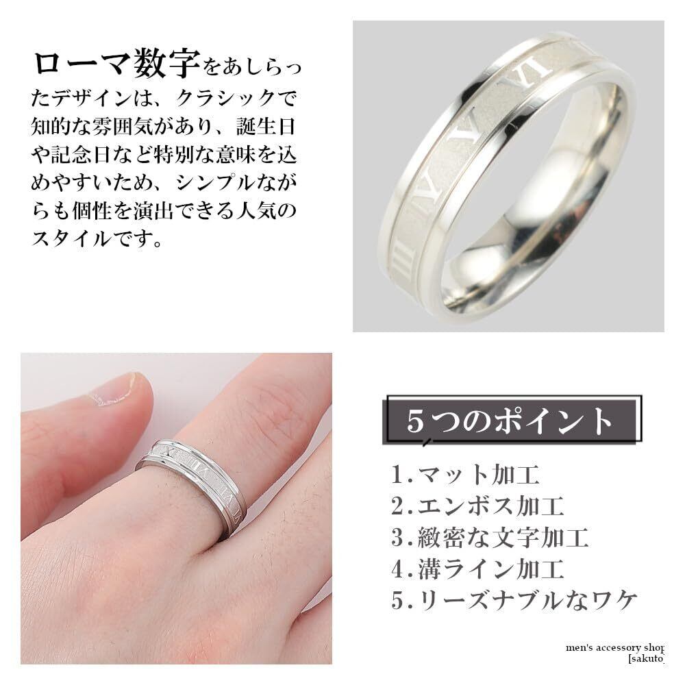[sakuto] 指輪 メンズ ローマ数字 リング ステンレス シルバー シンプル アクセサリー 幅6mm 記念日 誕生日 プレゼント (日本サイズ17号)