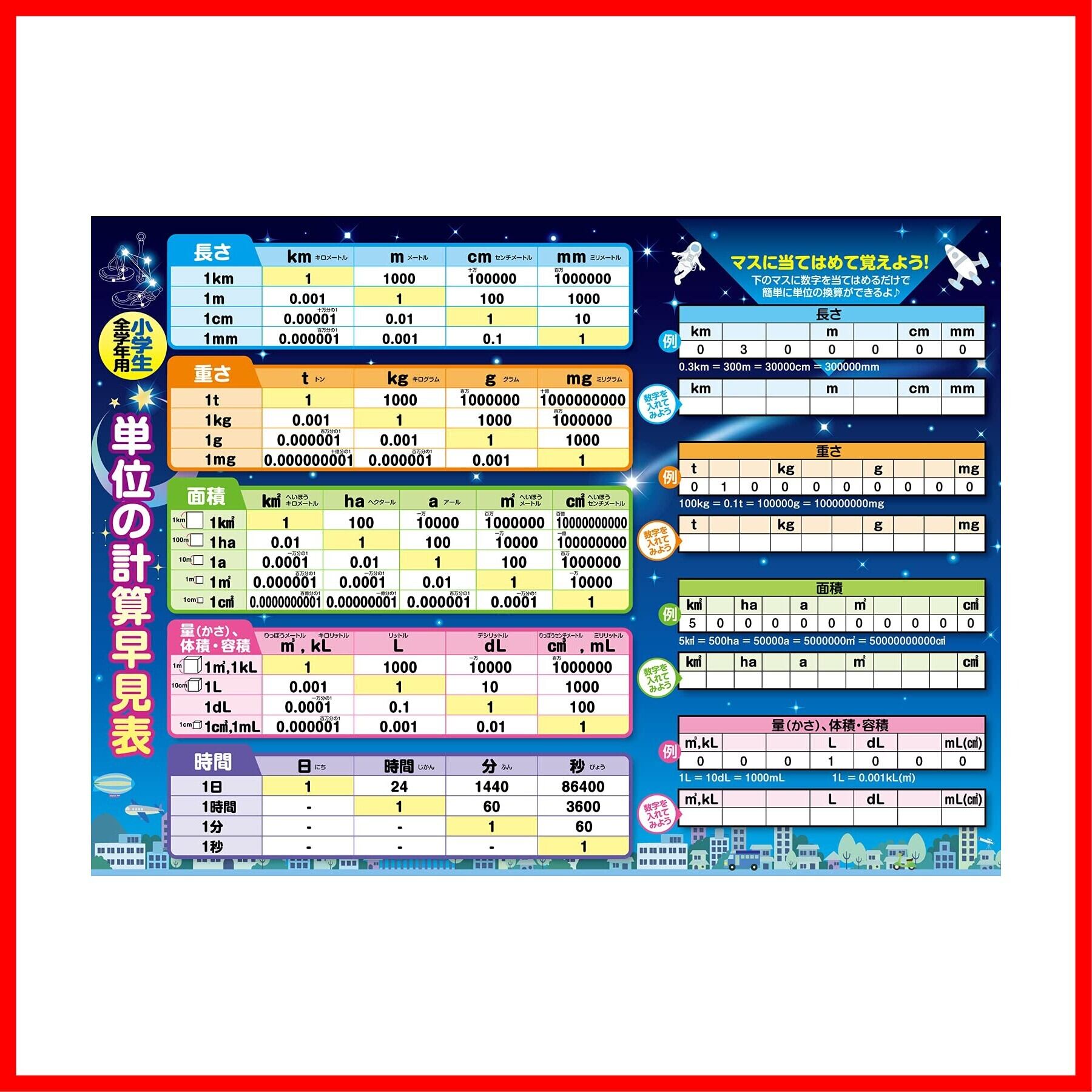 お風呂の学校 単位の計算早見表 お風呂ポスター 日本製 星空デザイン B3サイズ 中学受験 算数 単位換算 小学生全学年用 知育 学習 防水