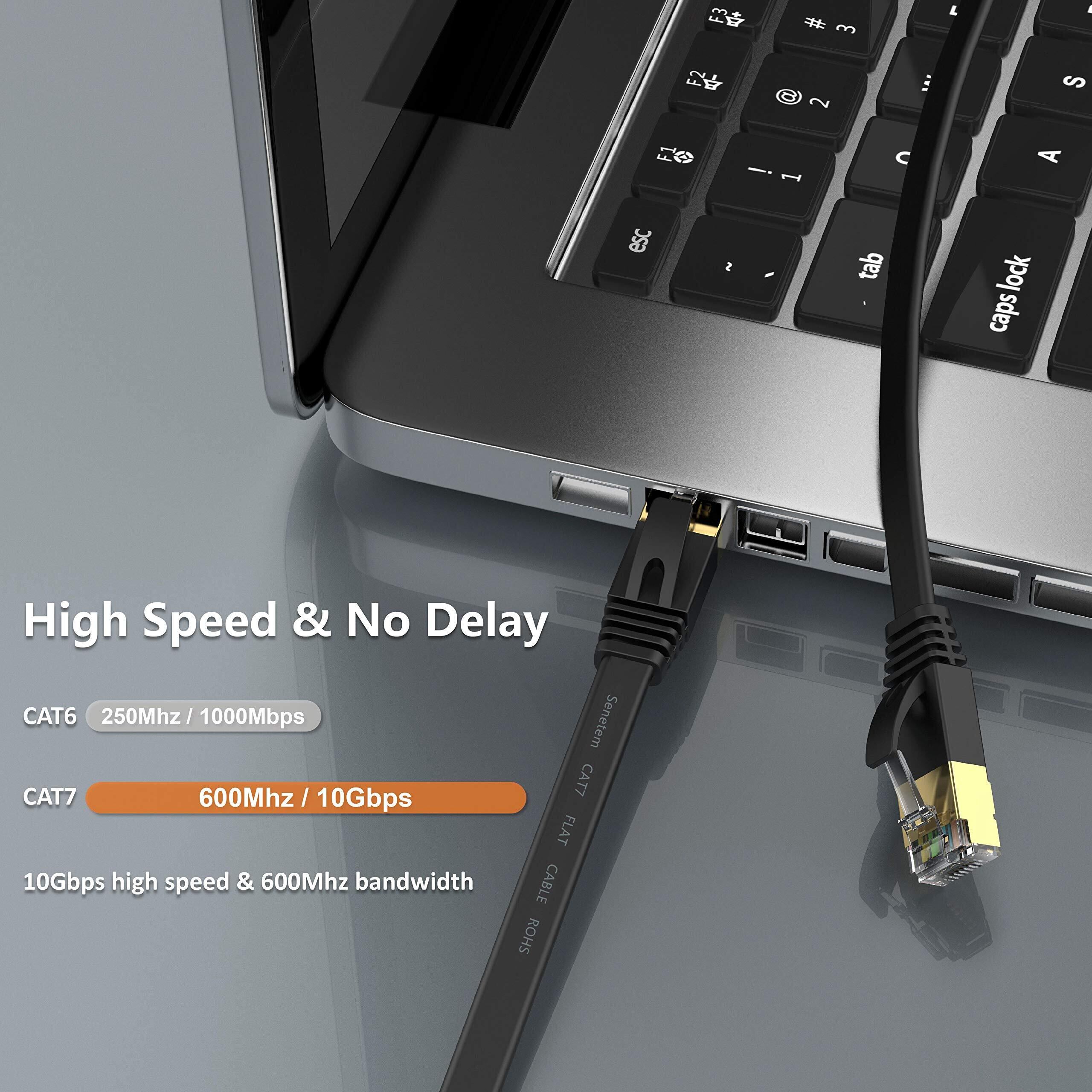 Senetem LANケーブル 30m CAT7ウルトラフラットLANケーブル カテゴリ7 高速 lanケーブル 10Gbps/600MHz CAT7準拠 イーサネットケーブル RJ45 ツメ折れ防止 やわらか スリム ブラック 屋内屋外用 モデム ルータ PS3 PS4 PS5 Xbox等に対応