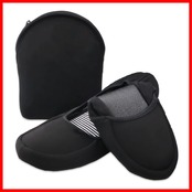 【製品仕様】 ■カラー:ブラック ■適応サイズ:22.0~24.0cm ■スリッパ実寸:24.5cm×10cm ■折り畳み収納サイズ:14.0×10.5×3.5cm ■ポーチサイズ:18.0×15.0cm ■素材:(本体)綿35%、ポリエステル65% (底側)PVCレザー