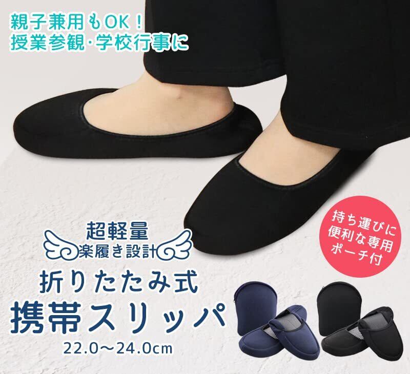 【折りたたみ式 携帯スリッパ】 親子兼用もOK!授業参観・学校行事に!持ち運びに便利な専用ポーチ付。入卒園式・入卒業式・保護者会・授業参観などお子様の学校行事の必須アイテム“上履きスリッパ”