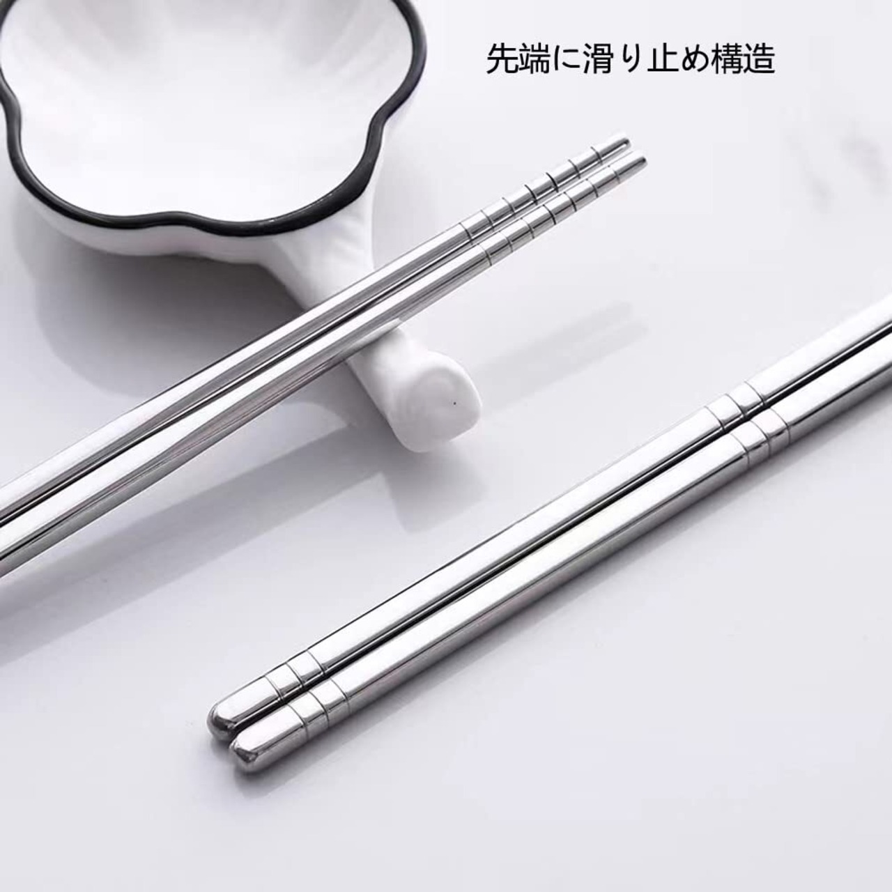 中空構造の箸&丸い先のスプーン:箸は中空構造で、軽量です、先端に滑り止め加工した、柄の方は四角くなってテーブルに置いても転がらない。鏡面仕上げの丸い先韓国風スプーン、高級感がある。適度な重さがあり、使いやすいです、