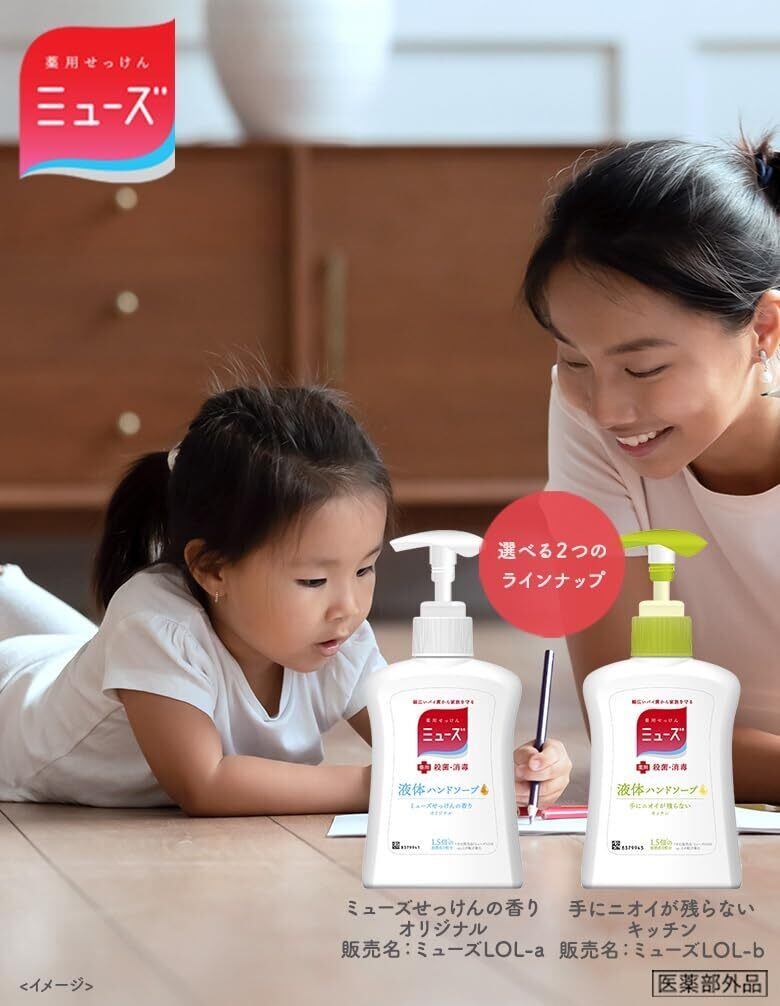 薬用せっけんミューズ 液体石鹸 オリジナルは幅広いバイ菌・ウイルスを殺菌・消毒・除菌する液体せっけんです。トイレや洗面所での普段使いで手をキレイに保ちます。