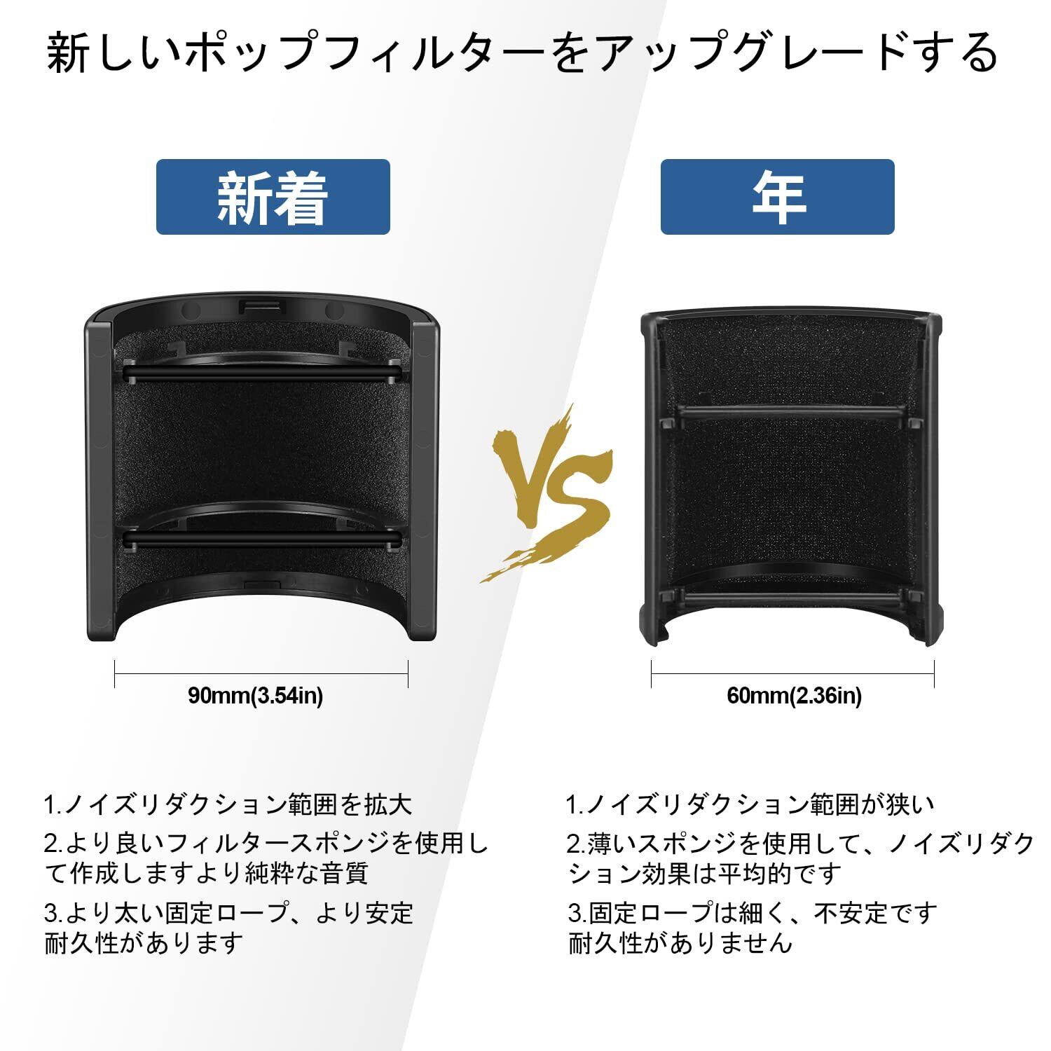 【高いノイズカット性能】既存のU型ポップガードにさらにスポンジ層を搭載したことで、よりノイズカットが可能になりました。従来比で40%もの性能がアップしています。