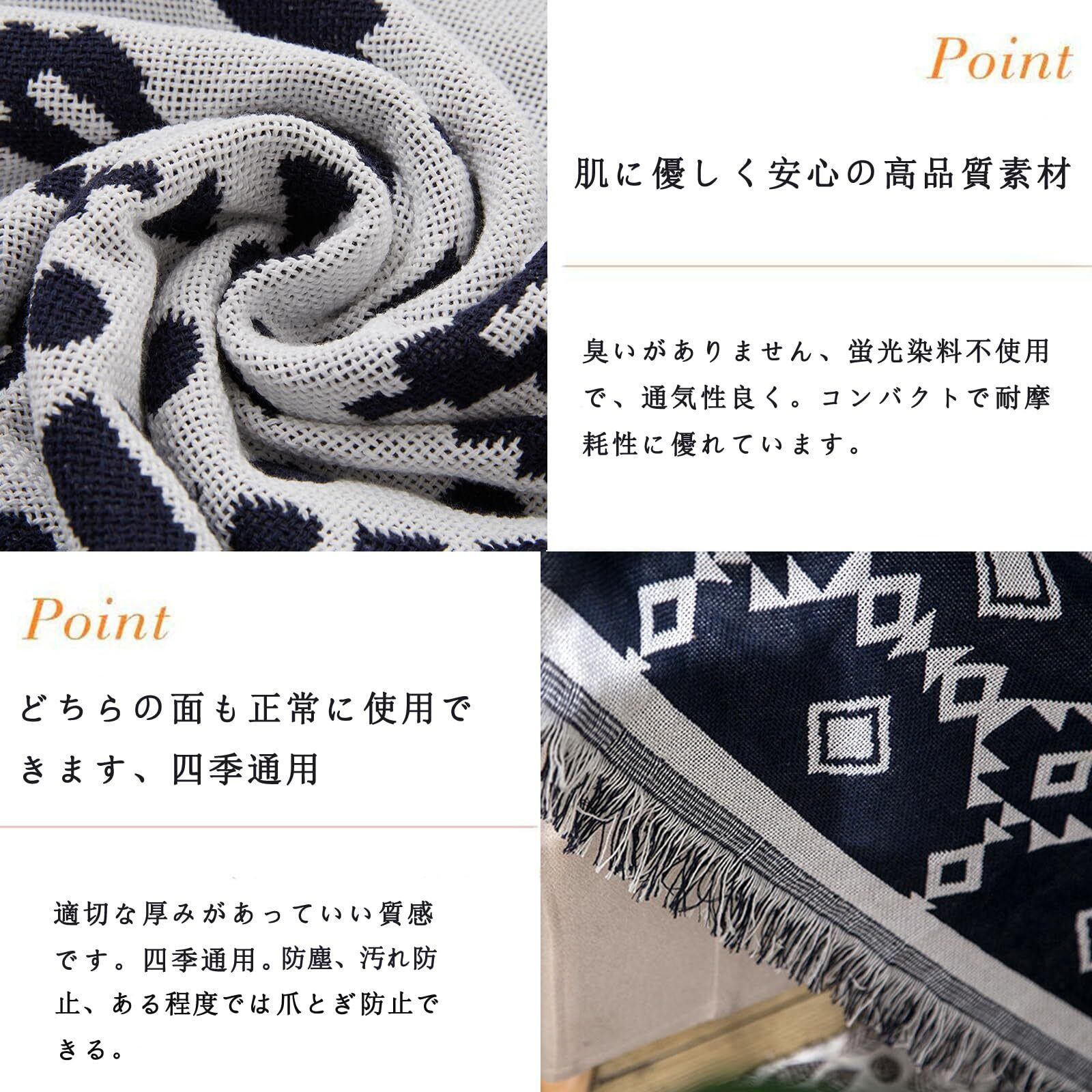 シンプルなデザイン フリンジ付き: 商品の柄が綺麗 ソファーの上に乗って部屋の色と合う 僕は、 どちらの面も正常に利用できます。飽きたときはベッドにかけたり多目的でつかえます。