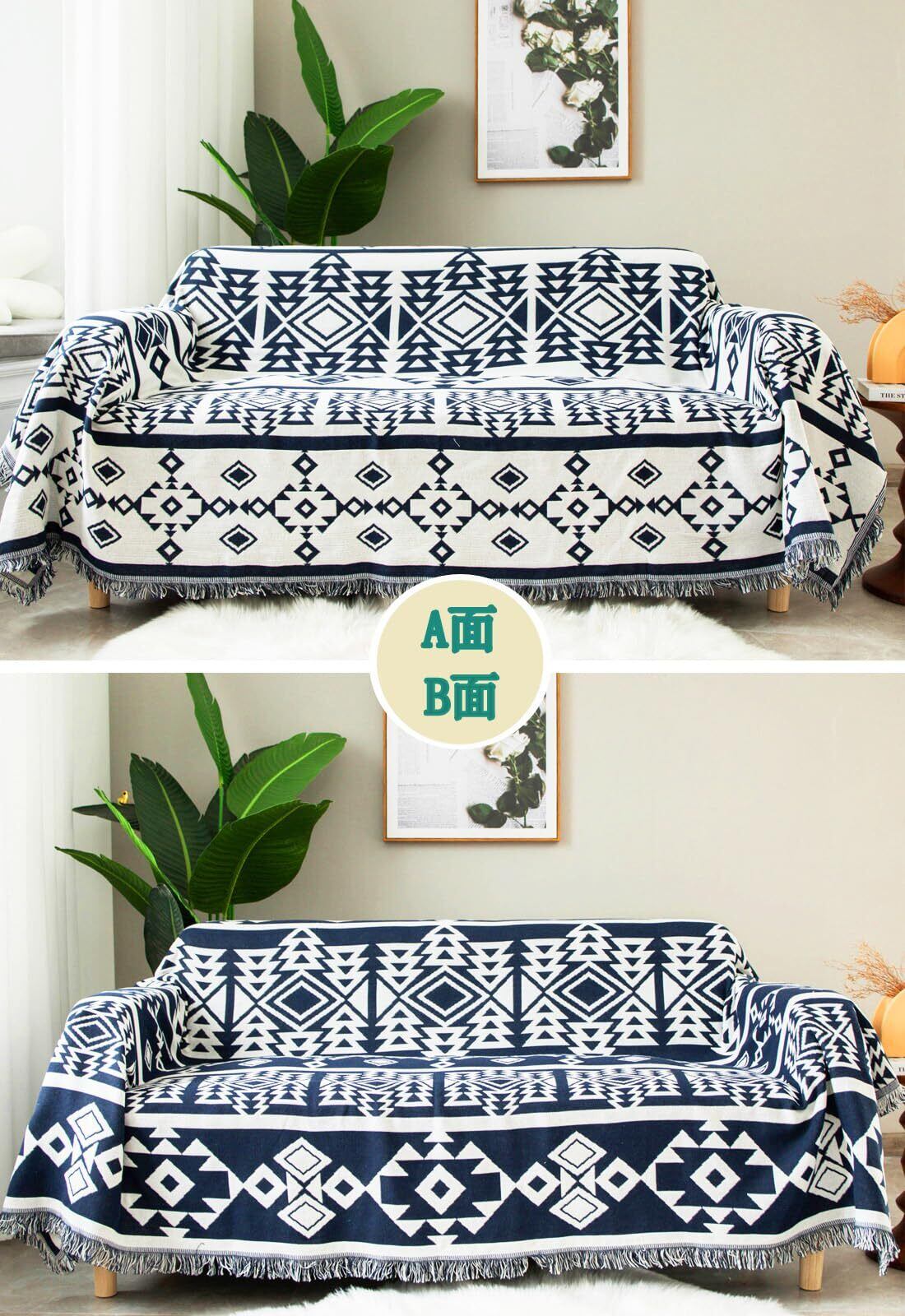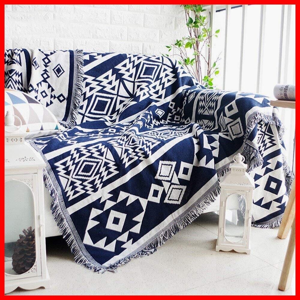 TMVOK マルチカバー ブランケットフリンジ付き ソファカバー おしゃれ 北欧風 リバーシブル 汚れ防止 保護カバー 綿 2人掛け 3人掛け 肘付き 肘なし ソファーかばー カウチカバー テーブルクロス 長方形 大きい 洗える 四季通用 90*180cm