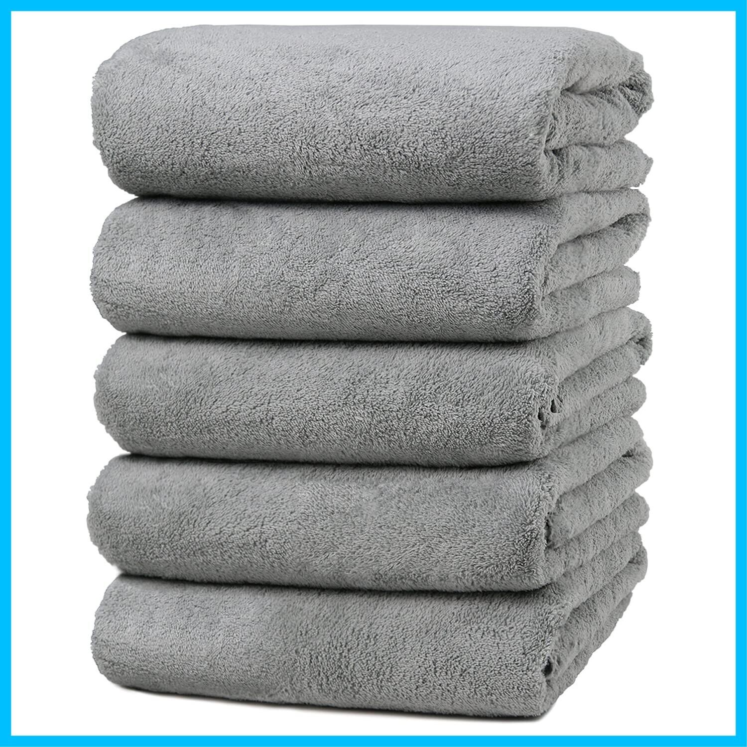 Joyful バスタオル マイクロファイバー ホテル仕様 大判 60*120cm 5枚セット 高速吸水 速乾 耐久性 抗菌防臭 ふわふわ 柔らかい 肌触り (グレー)
