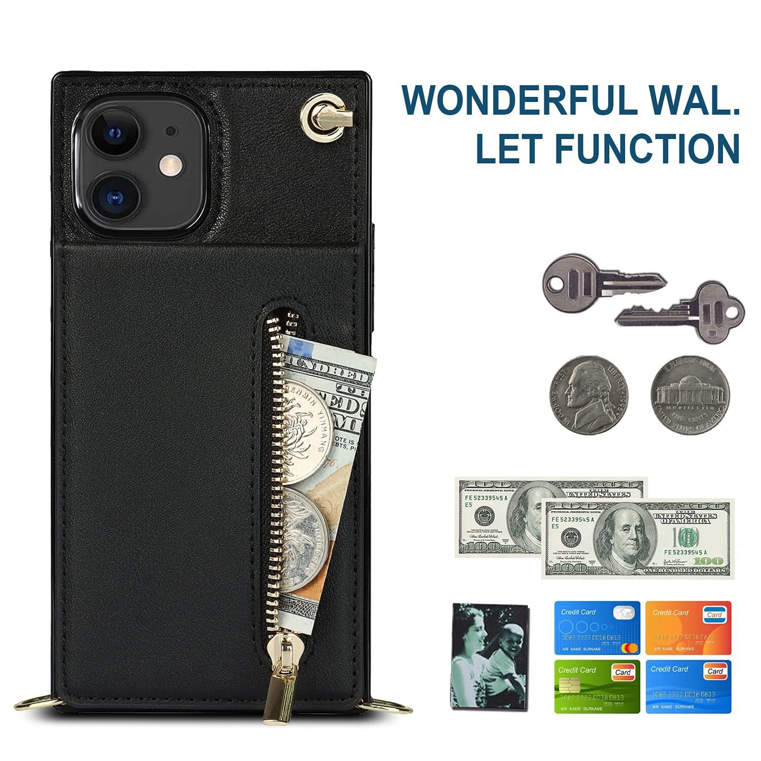 Cavor iPhone 11 Proスマホ ケースiPhone 11 Pro 手帳型ケースiPhone 11 Pro スマホ 携帯ケースiphone11proケース肩掛け 首かけ 斜めがけ ショルダーアイフォン11 Pro 財布型 ケーススマホケースiPhone11 Proカード収納ケース【上下開】iphone11プロ 携帯 カバー ステント機能Qi ワイヤレス充電対応 薄型軽量【ブラック】