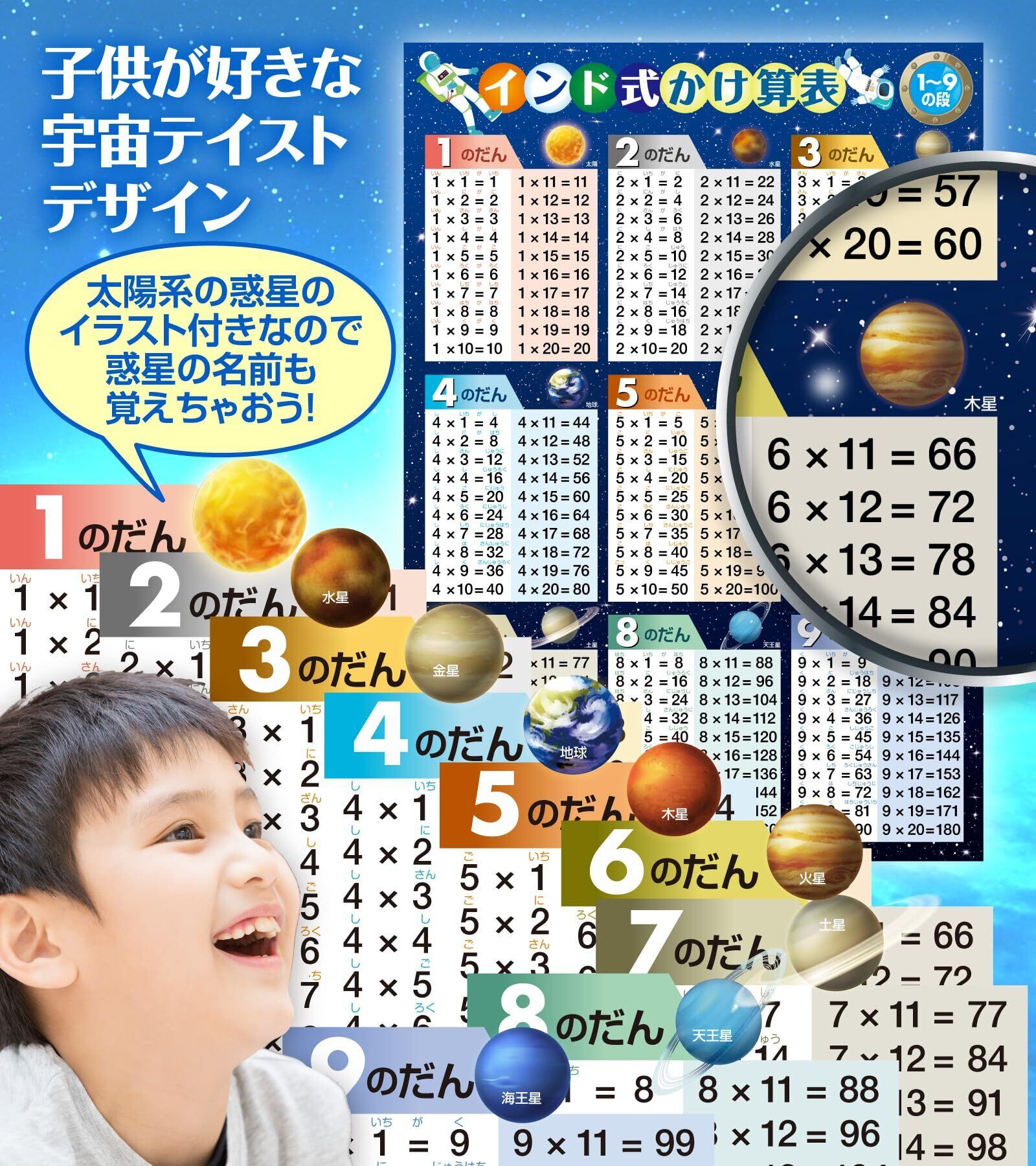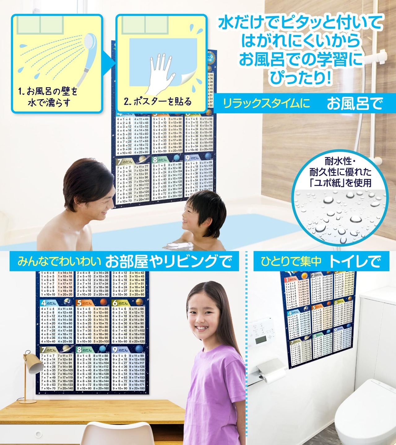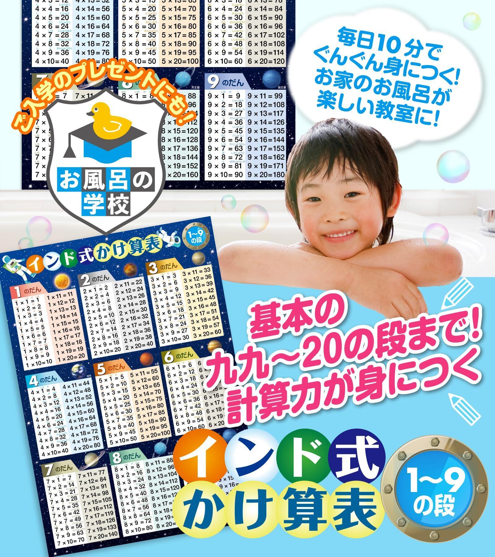 お風呂の学校 インド式かけ算表 1〜9の段 お風呂ポスター 日本製(宇宙デザイン) 算数 知育 学習 九九表 A2サイズ