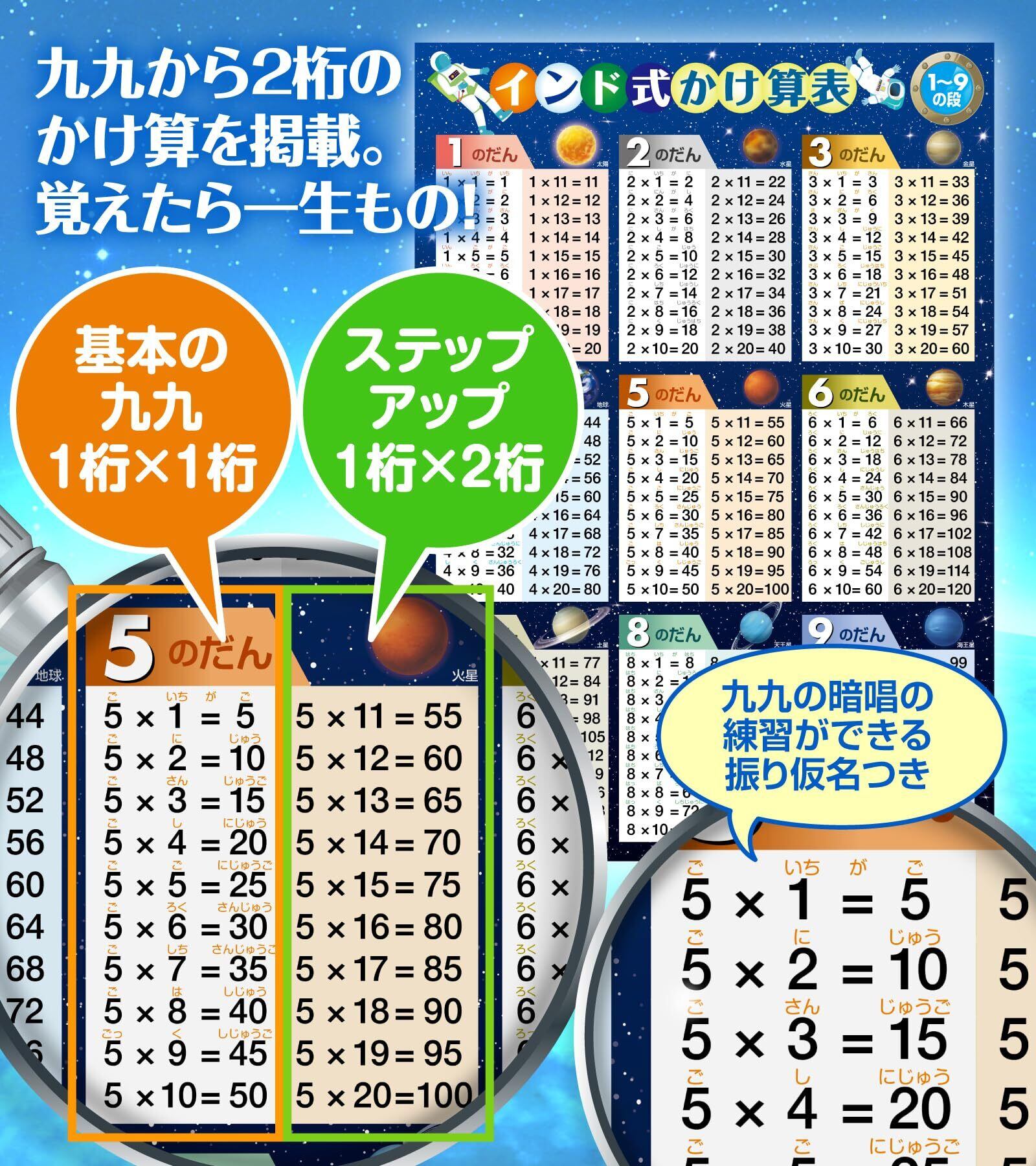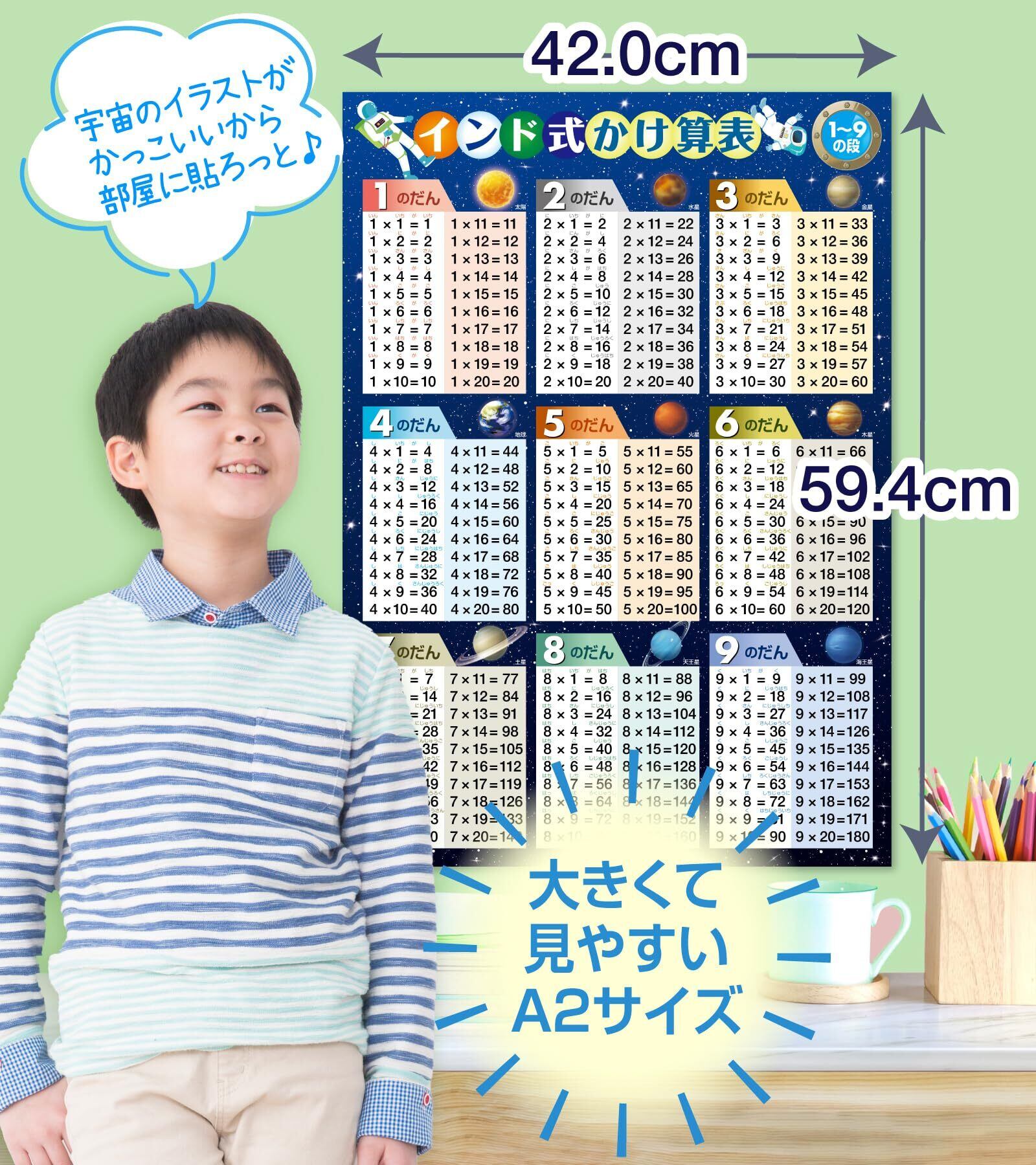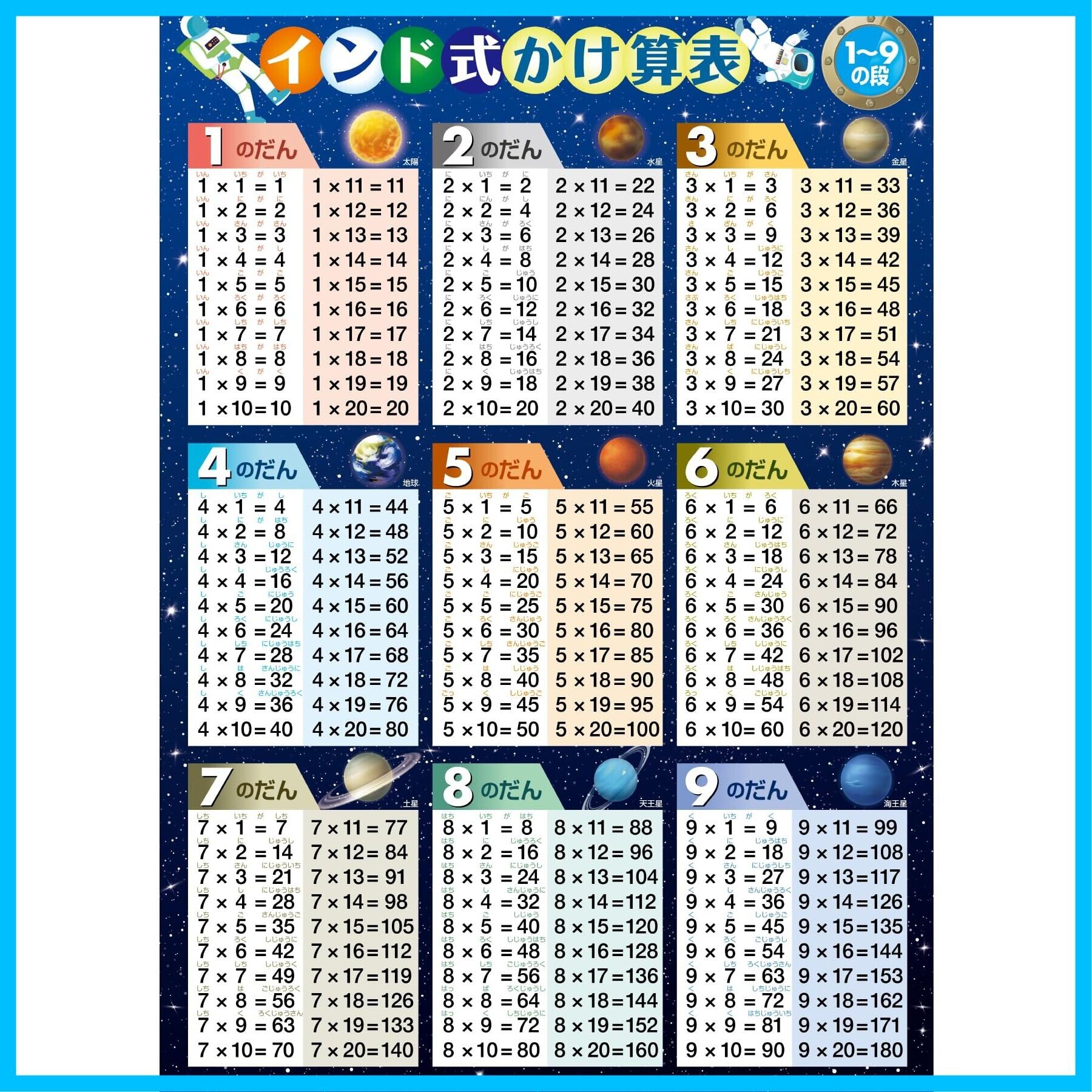 お風呂の学校 インド式かけ算表 1〜9の段 お風呂ポスター 日本製(宇宙デザイン) 算数 知育 学習 九九表 A2サイズ