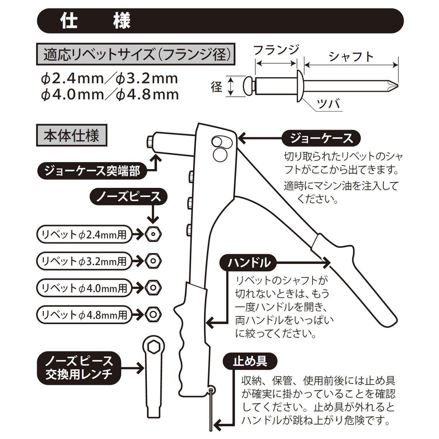 適応リベットサイズ(mm):2.4、3.2、4.0、4.8