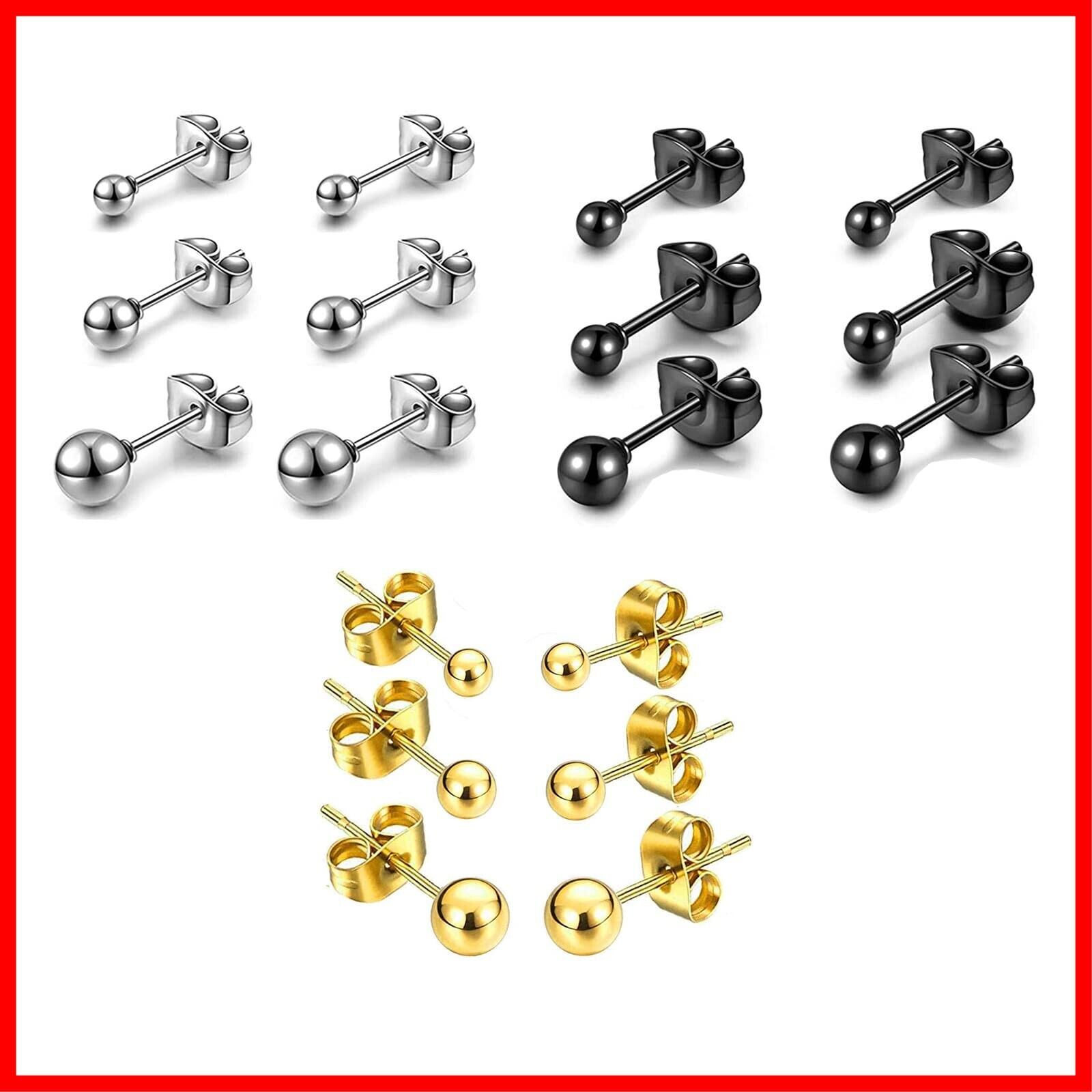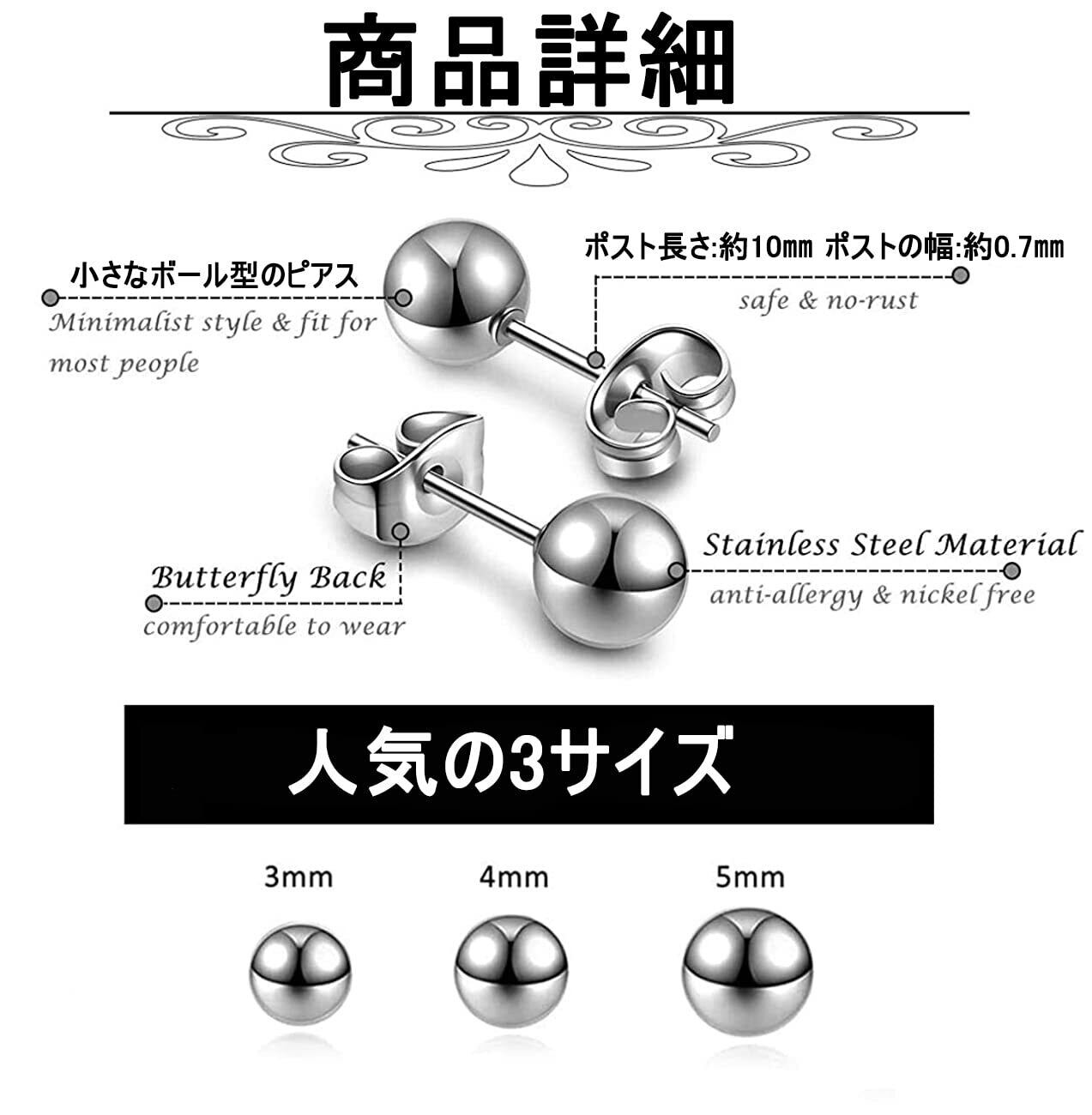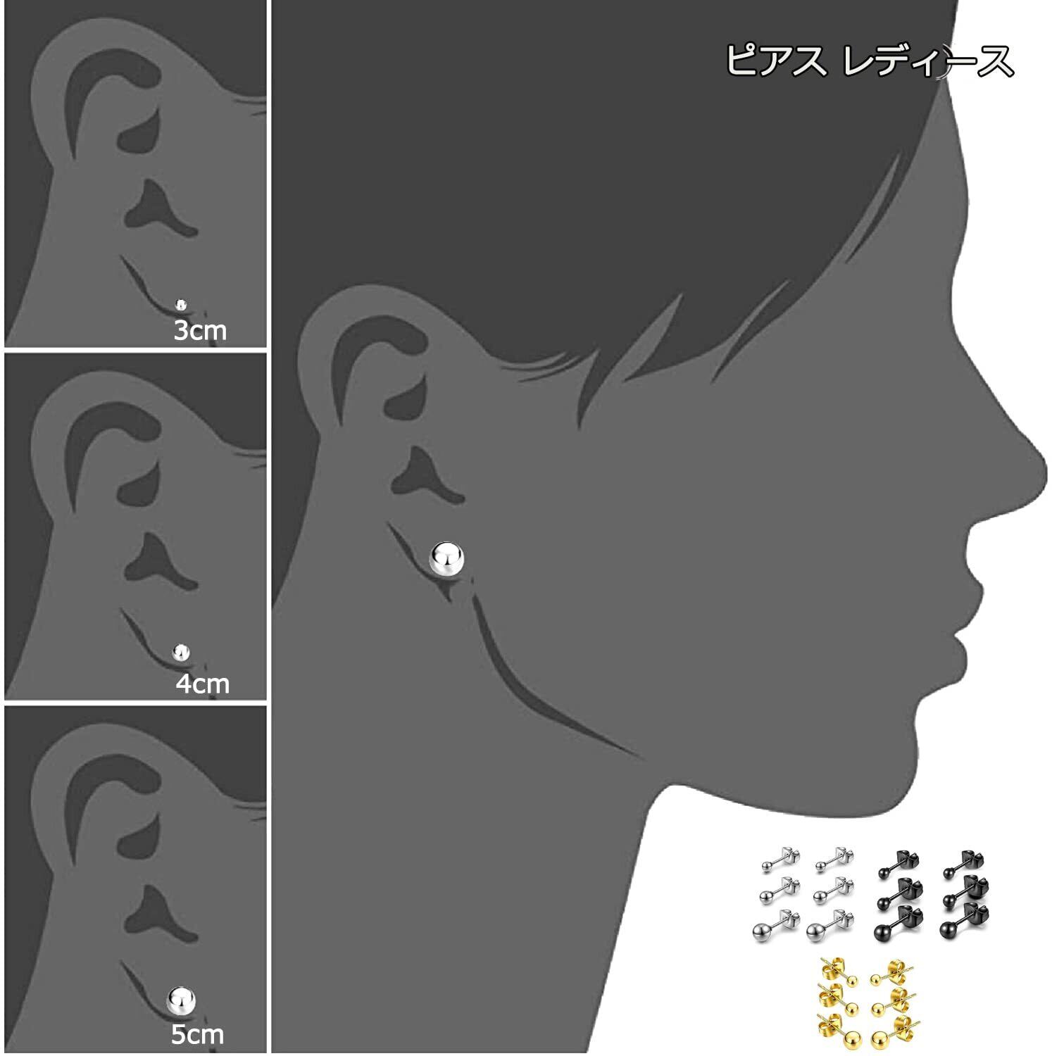 ピアス レディース サージカルステンレス 人気 丸玉(ボール)ピアス 金属アレルギー 両耳用 人気 シンプル アクセサリー 誕生日 記念日 プレゼント(3mm 4mm 5mm) シルバー&ブラック&ゴールド セット 9ペア