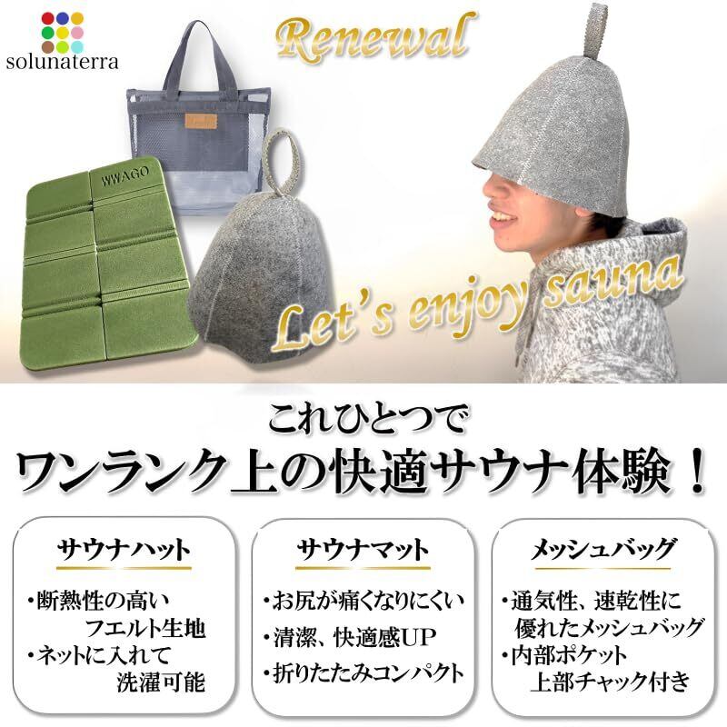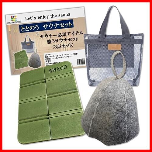 solunaterra サウナハット サウナマット スパバッグ 折りたたみ ととのう 銭湯セット (ハット&マット&バッグ)