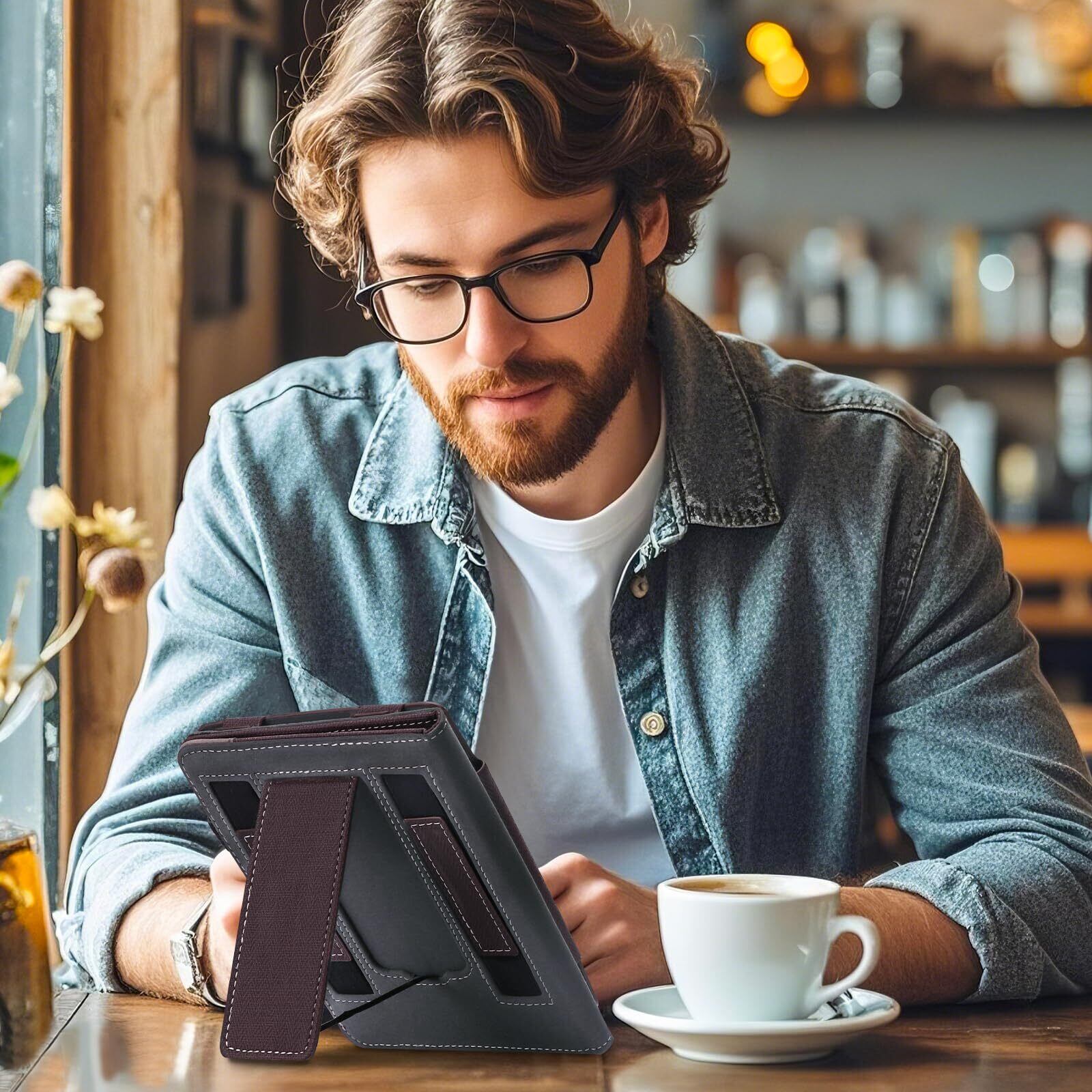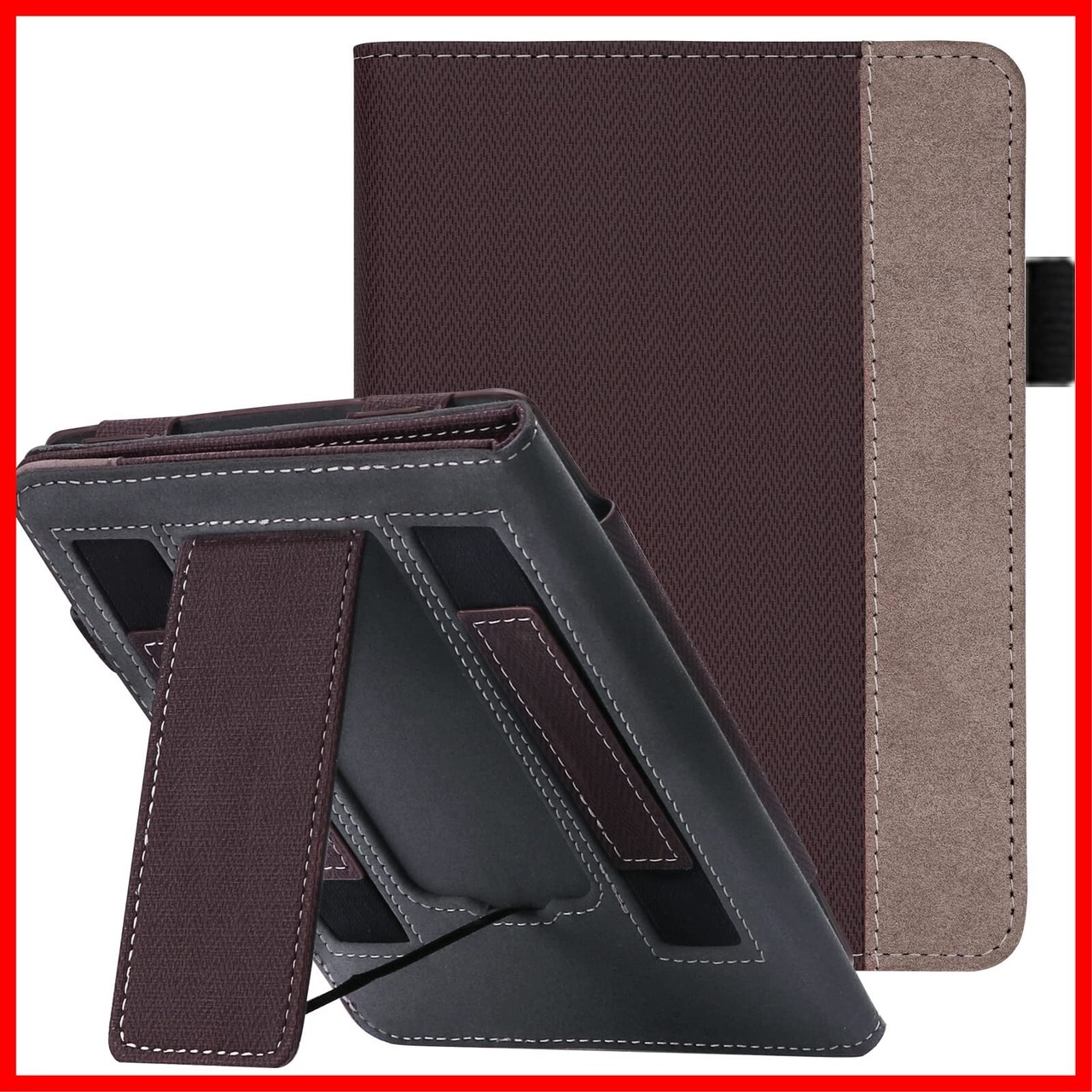 【スタンド+2つのハンドストラップのデザイン】折りたたみ式のスタンドデザインは、読書中に手を自由にすることができます。両手ストラップのデザインは片手でどちらの手でも読むのに便利です。