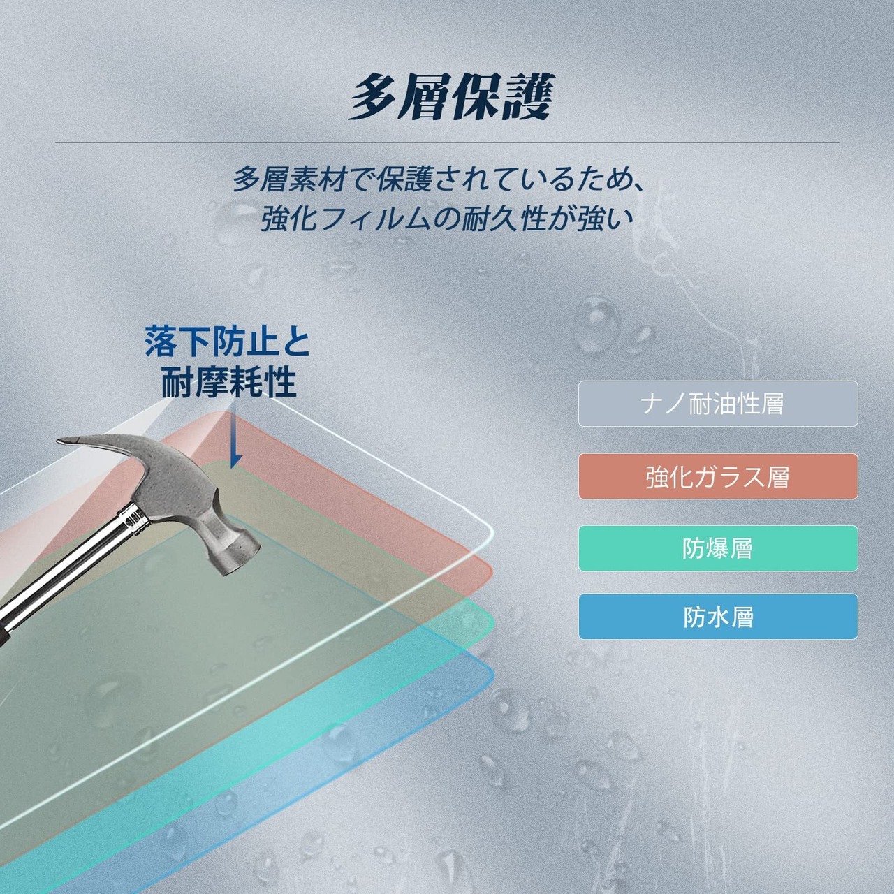 【高品質の素材】硬度9Hの素材を使用し、アークラウンドエッジ構造でお客様を守ります。ナノ耐油性層、強化ガラス層、防爆層、防水層の多層保護層があるので、傷防止、落下防止、耐摩耗性は優れている。HDクリア、99.9%の光透過率、指紋をほとんど残さない。強化ガラスが損傷した場合、小さな破片がどこにでも飛散することはなく、ユーザーの安全を確保できる。