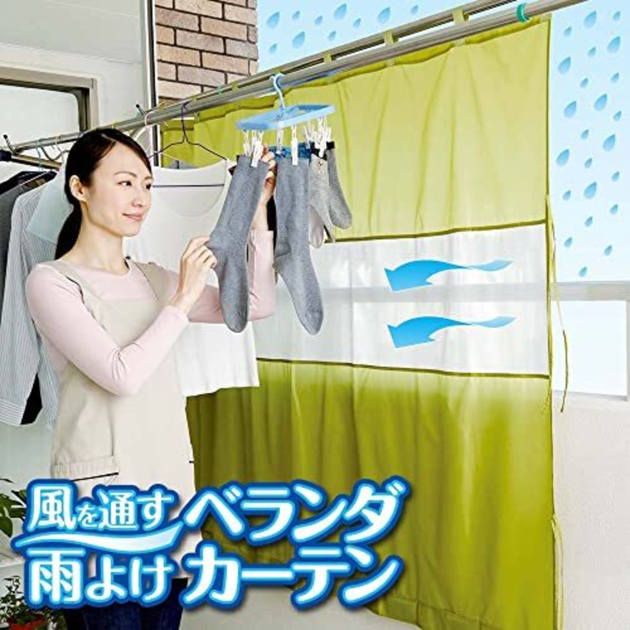 アイメディア(Aimedia) 風を通す雨よけベランダカーテン ベランダシート ベランダシェード 幅190cm 洗濯物干し 遮光 目隠し 日よけ 陰干し サンシェード 下着 防塵
