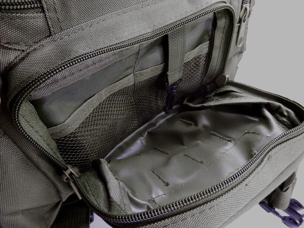 内部にもファスナー付のポケットがたくさんあり小物の収納に便利です。ウエストバッグ用のベルト部分は、背面に収納可能です。