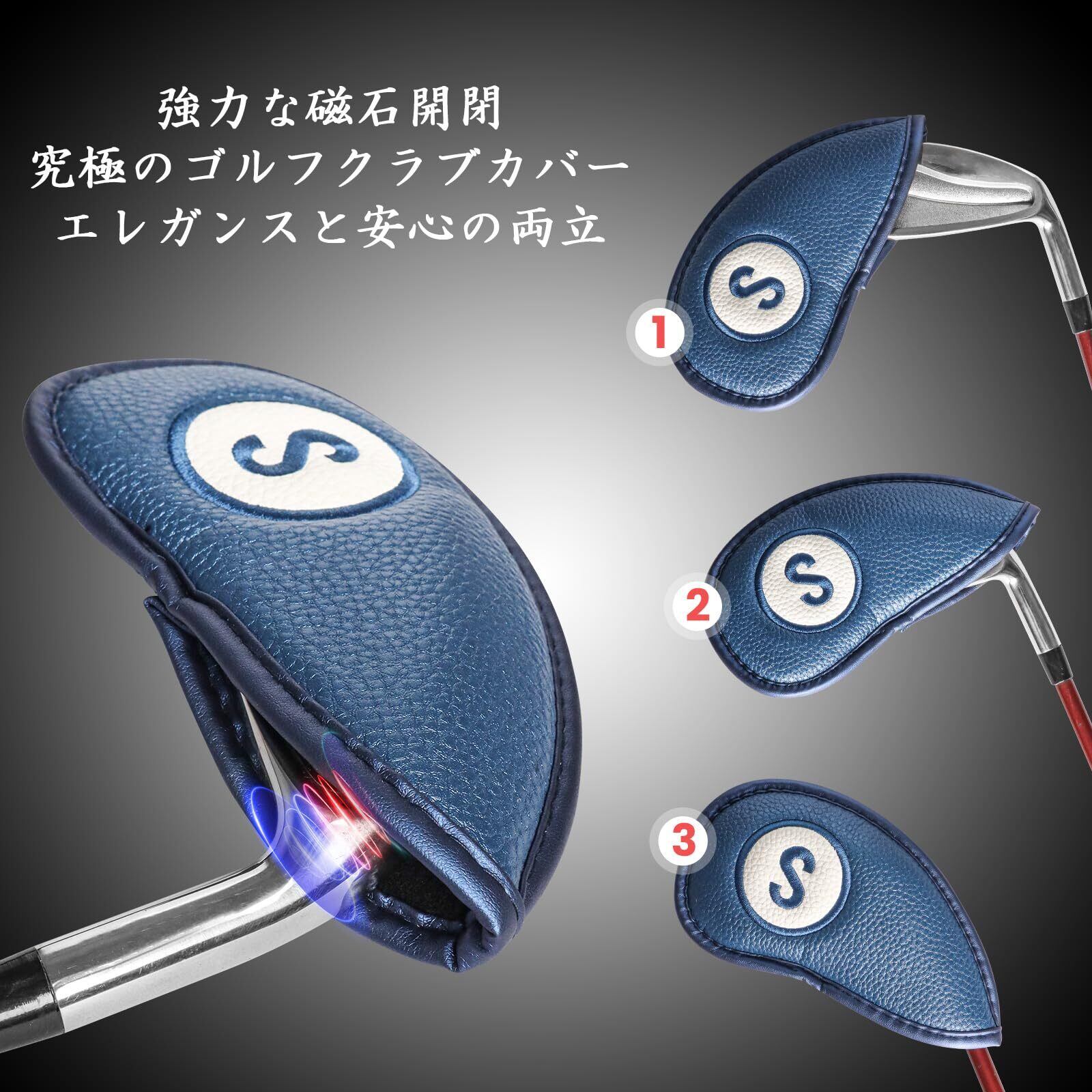 ゴルフアイアンカバー マグネット式開閉 ゴルフヘッドカバー ウェッジカバー 高級 PUレザー 軽量 防水 耐摩耗 番号刺繍 ヘッド保護カバー LT-016