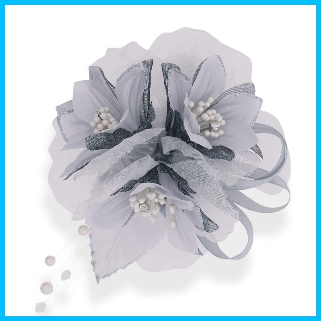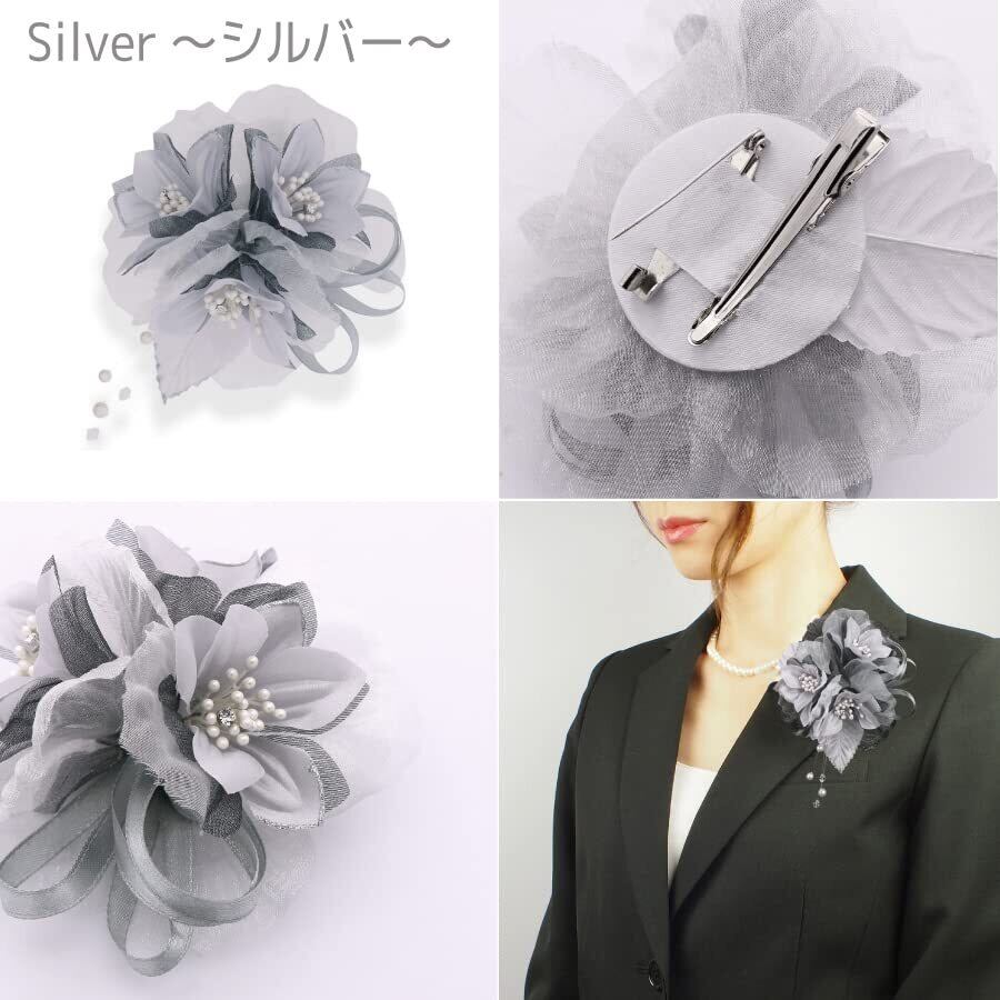 [クレインズコレクション] 手作り リリー コサージュ ブローチ 2WAY クリップ ピン フォーマル シーン や エレガント な装いに シルバー