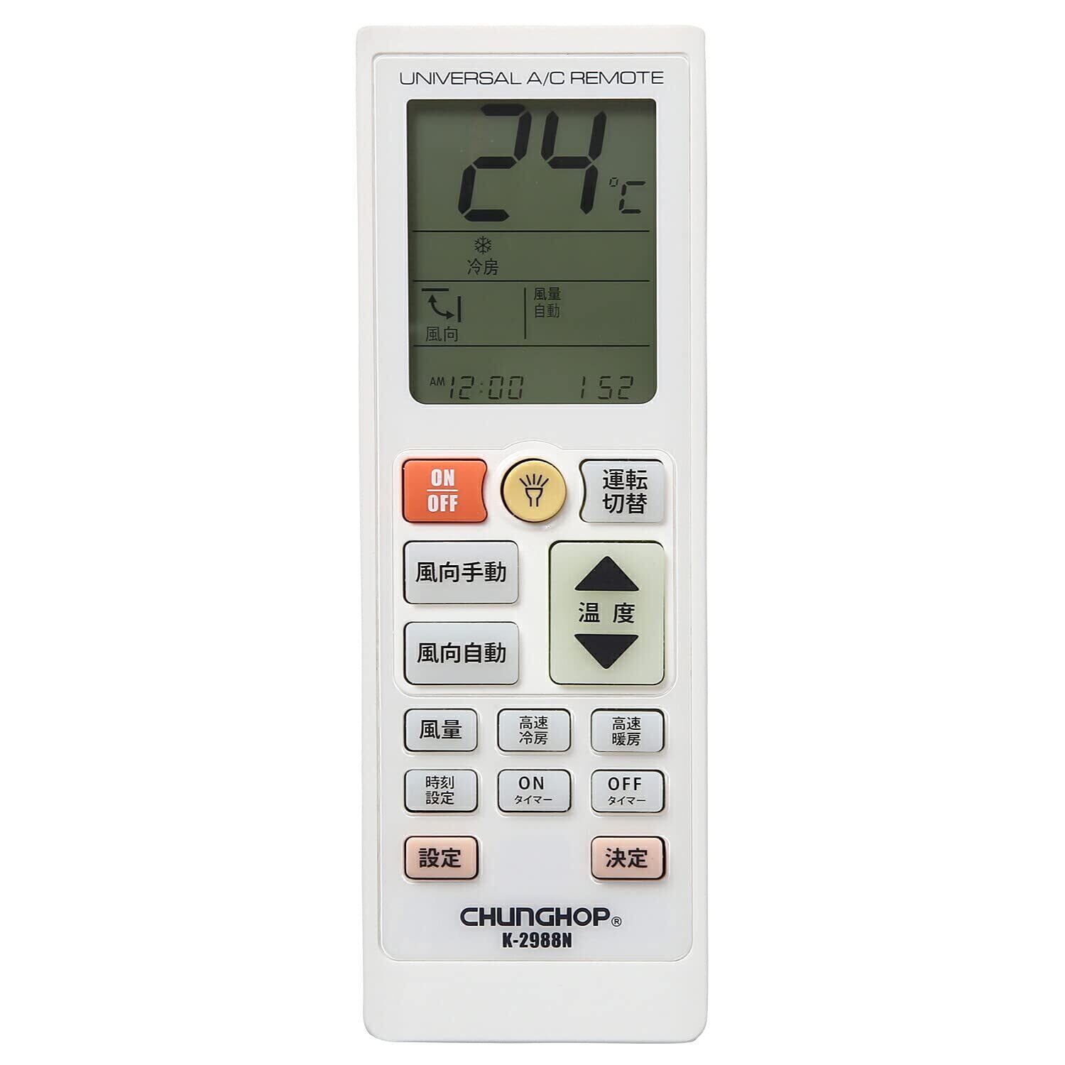 CHUNGHOP 【日本語説明書付き】K-2988N 各社共通1000種対応 エアコン用ユニバーサルマルチリモコン 汎用 自動検索機能も搭載!! 冷暖房 互換リモコン
