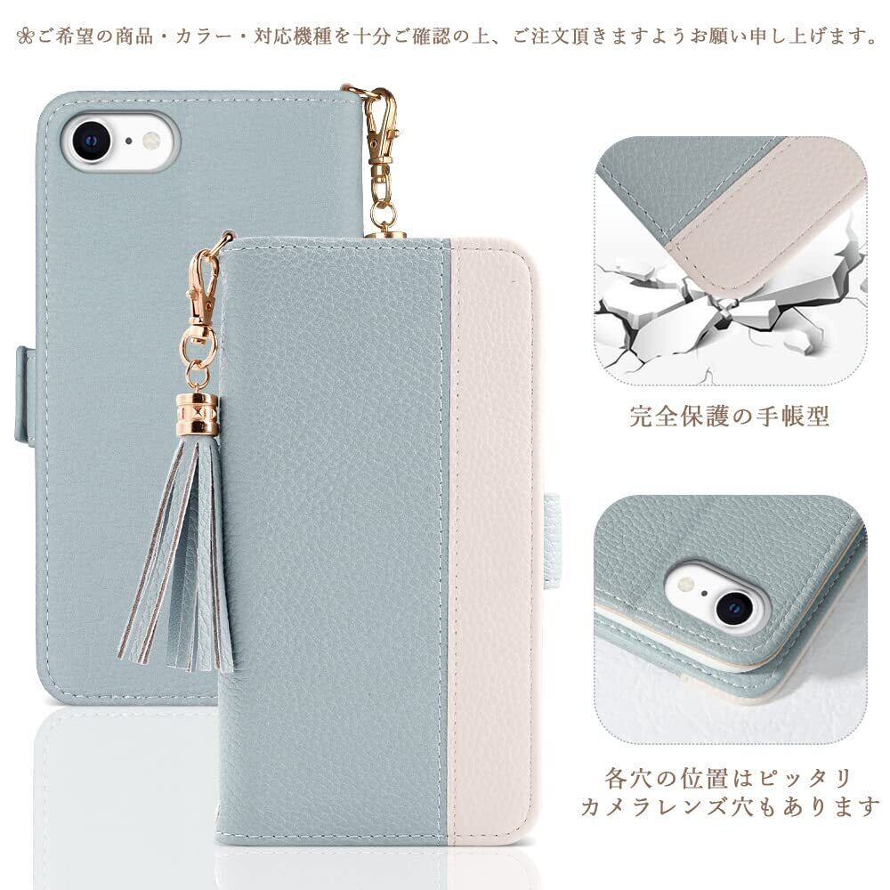 iPhone se3 ケース 手帳型 iPhone S2 ケース 手帳型 タッセル スプライシング が美しい アイフォン 8 スマホケース 手帳 アイフォン7 se3 おしゃれ カード収納 女性 財布型 かわいい レディース アイフォン 8 7 6 ケース手帳がた 贈り物 ファッション 横置き機能 レザー シンプル お洒落 耐摩擦 (スカイブルー)