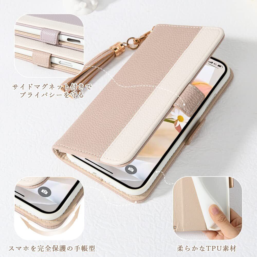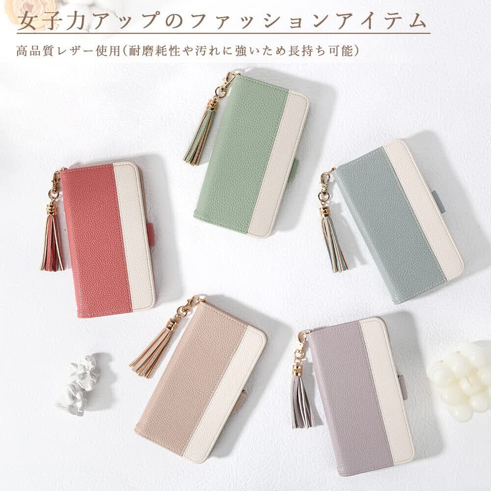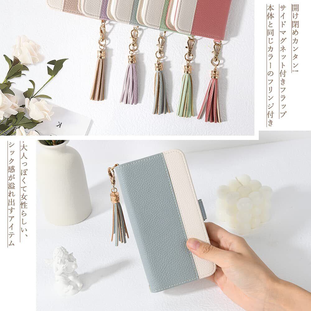 女性用手帳型スマホケース・シックでおしゃれ表地は高品質レザー、ケース部分は柔軟なTPUを使用しています。二色縦にあしらったデザインはシンプルでフェミニン感が溢れ出す。女性にふさわしいファッションアイテムで、同色の房飾り付きます。通勤や通学など様々なシーンで活躍できるアイテム。プレゼントとしてもおすすめします。誕生日や記念日などに最適なプレゼント!