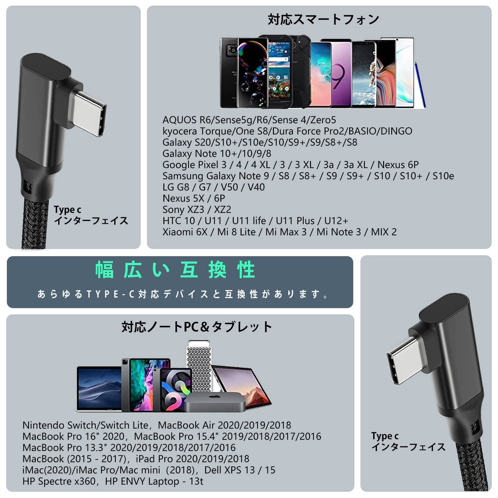 USB 3.2 Type C ケーブル L字 (1m, ブラック) SLEIJAOOE【20Gbps転送/PD3.0/QC3.0対応 100w急速充電 /4K@60Hz映像出力/ 】USB 3.2 Gen 2x2 タイプc ケーブル 【編組ナイロン 】MacBook/MacBook Pro/iPad Pro/Nintendo Switch/Xperia/Galaxy/Google Pixel等Type-C機種対 超高耐久