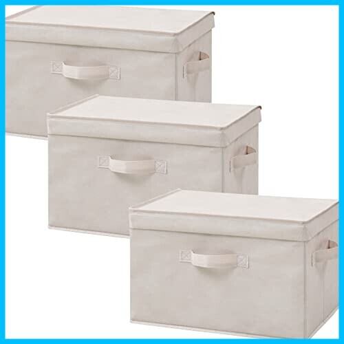 山善(YAMAZEN) ふた付き 収納ボックス 3個組 カラーボックス対応 取っ手付き 幅38×奥行25×高さ25cm 完成品 ベージュ YNF2-3PF(BE)