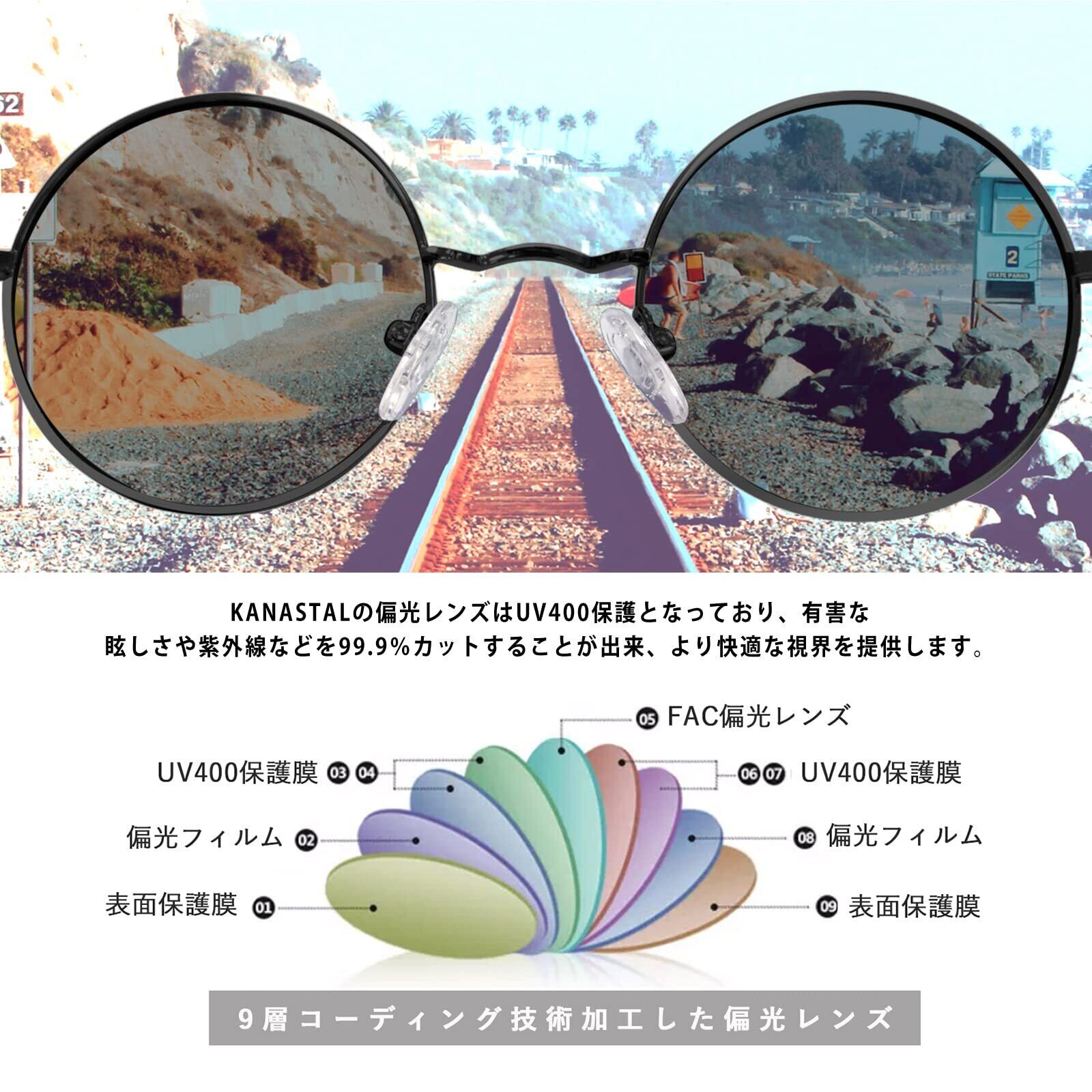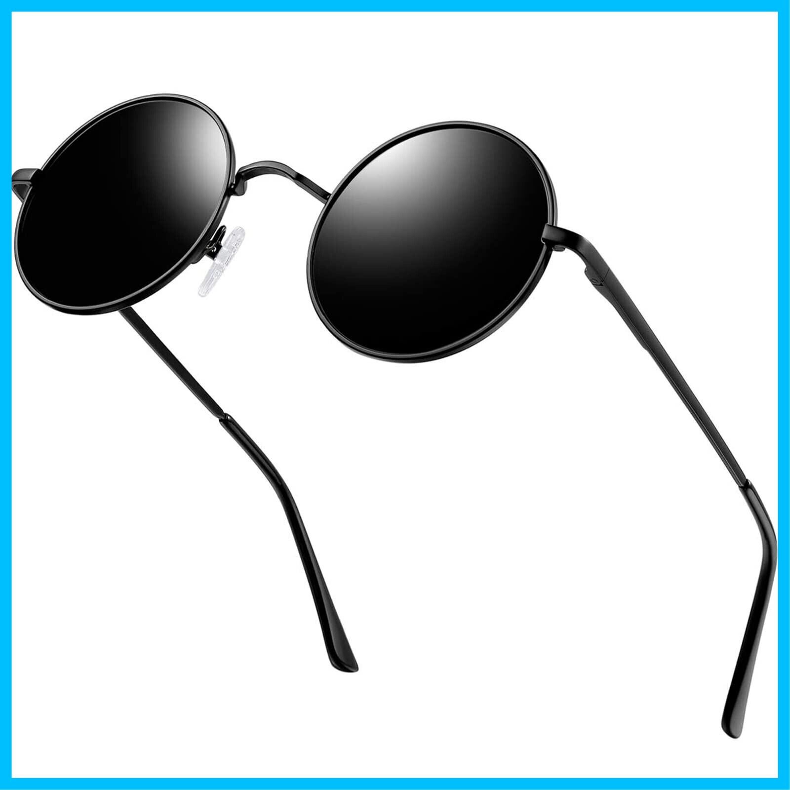 [KANASTAL] サングラス 丸 メンズ 偏光 丸型 ラウンド レディース クラシック デザイン ファッション UVカット 超軽量 運転用 さんぐらす (マットブラック)