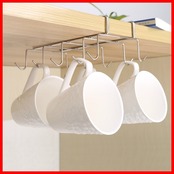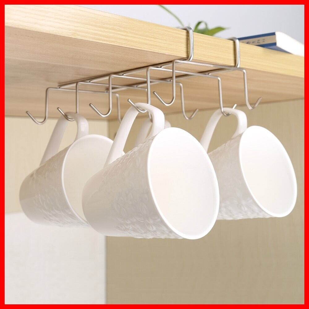 Wellbeingjp カップハンガー 戸棚下 ラック ステンレス製 食器棚収納 ティーセット10コップ 穴あけ・ネジ止め不要 キッチン収納ラック(幅16x長さ27.5x高さ7.5cm)