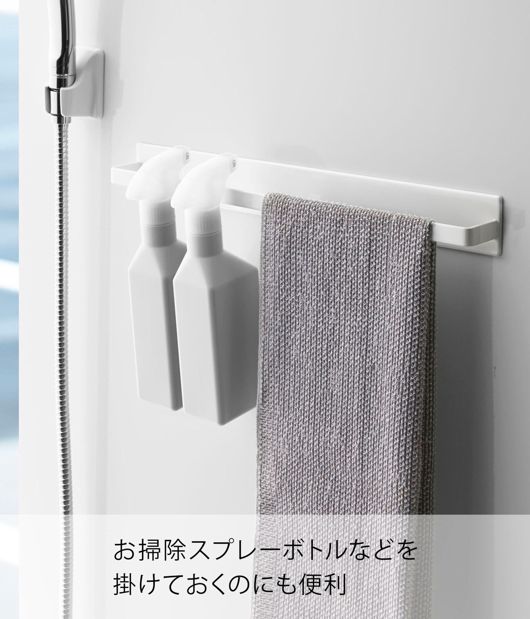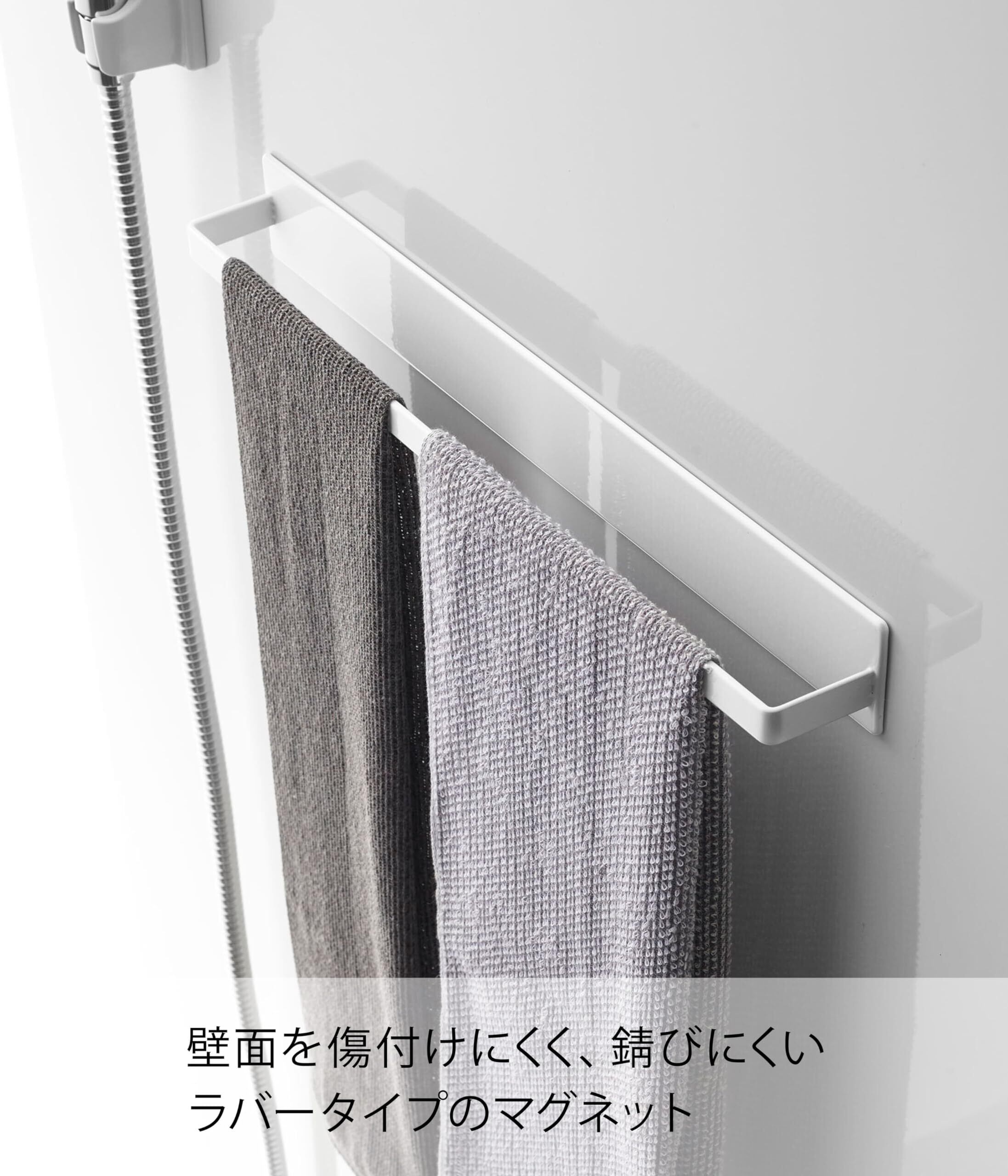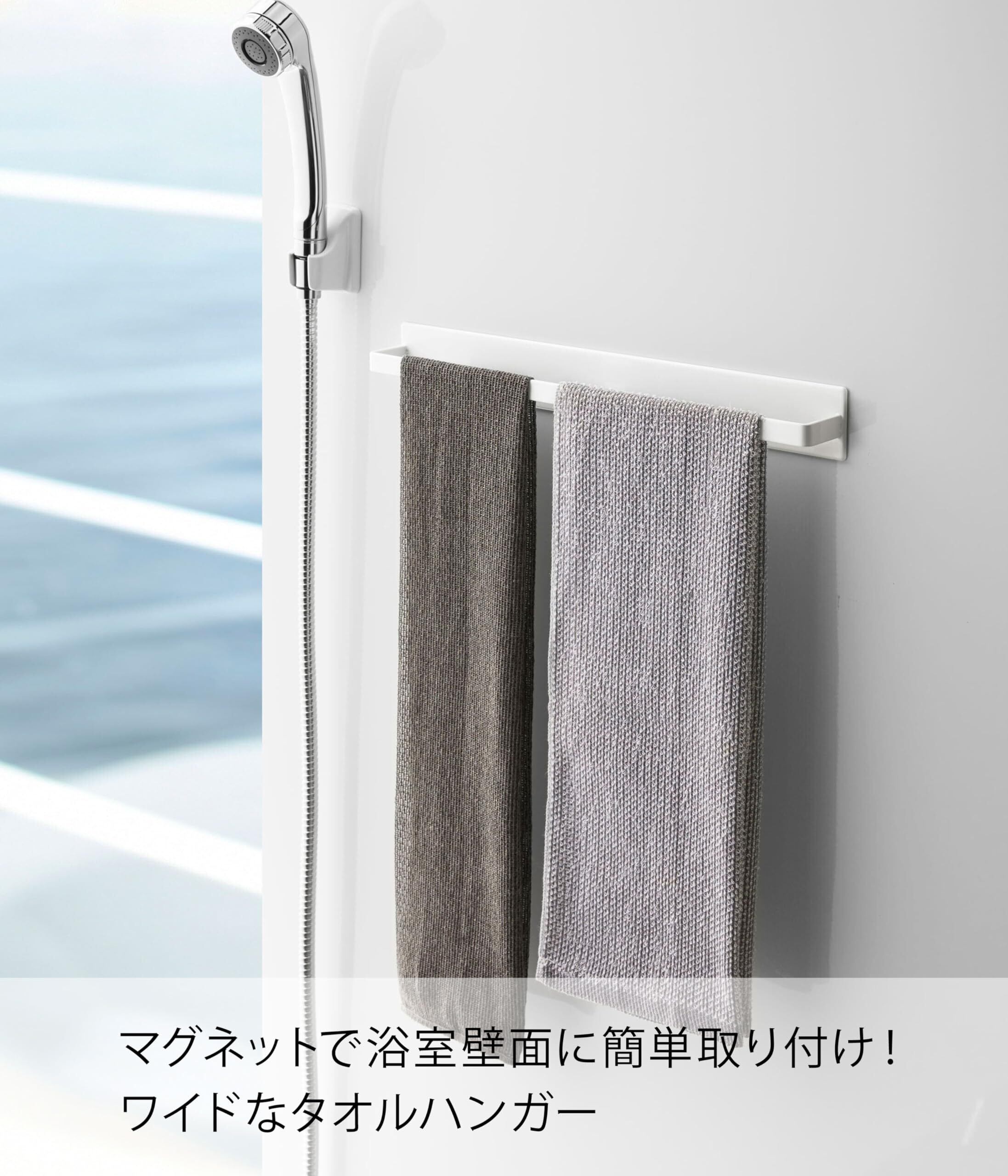 山崎実業(Yamazaki) マグネットバスルームタオルハンガー ワイド ホワイト 約W40XD4.5XH5cm タワー タオル ハンガー 掛け 4596