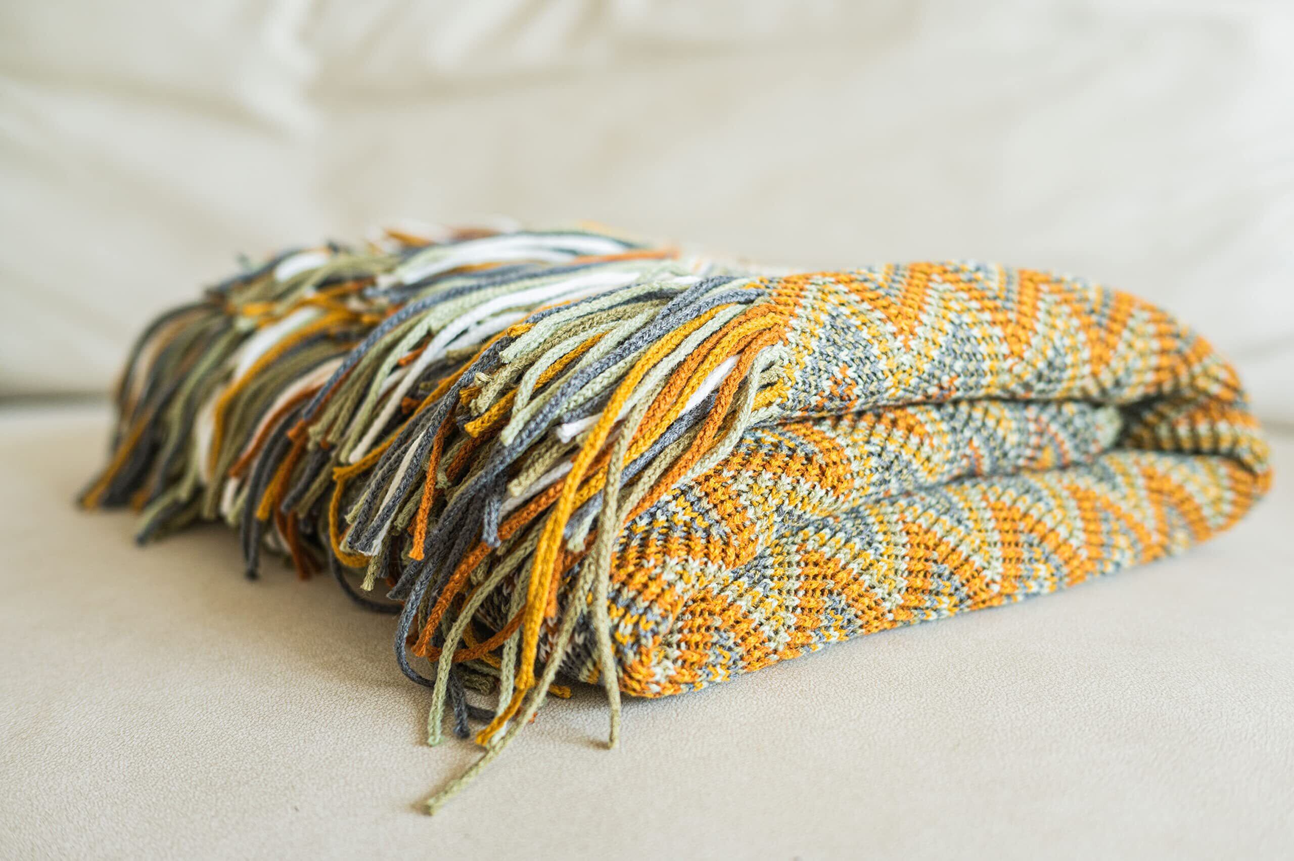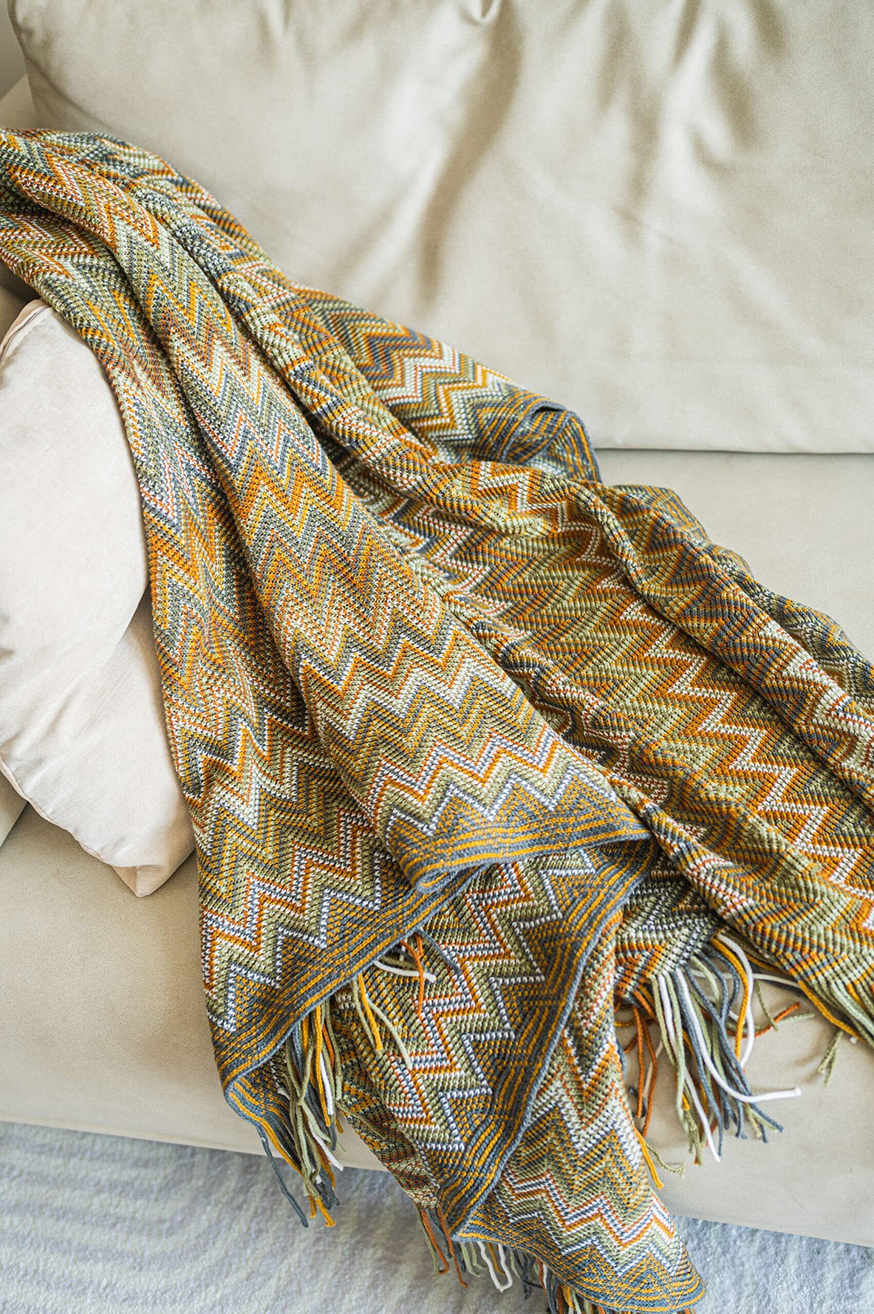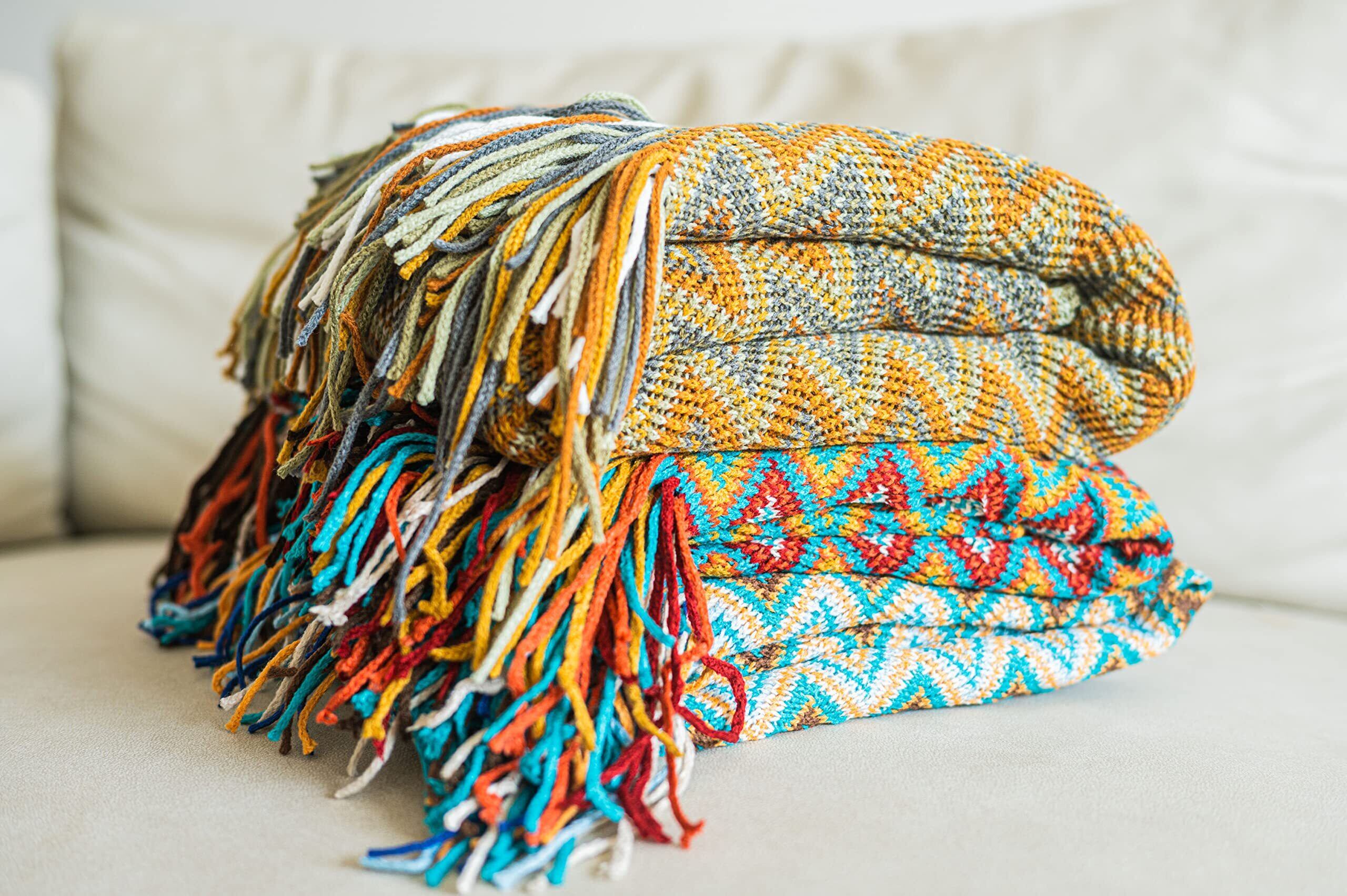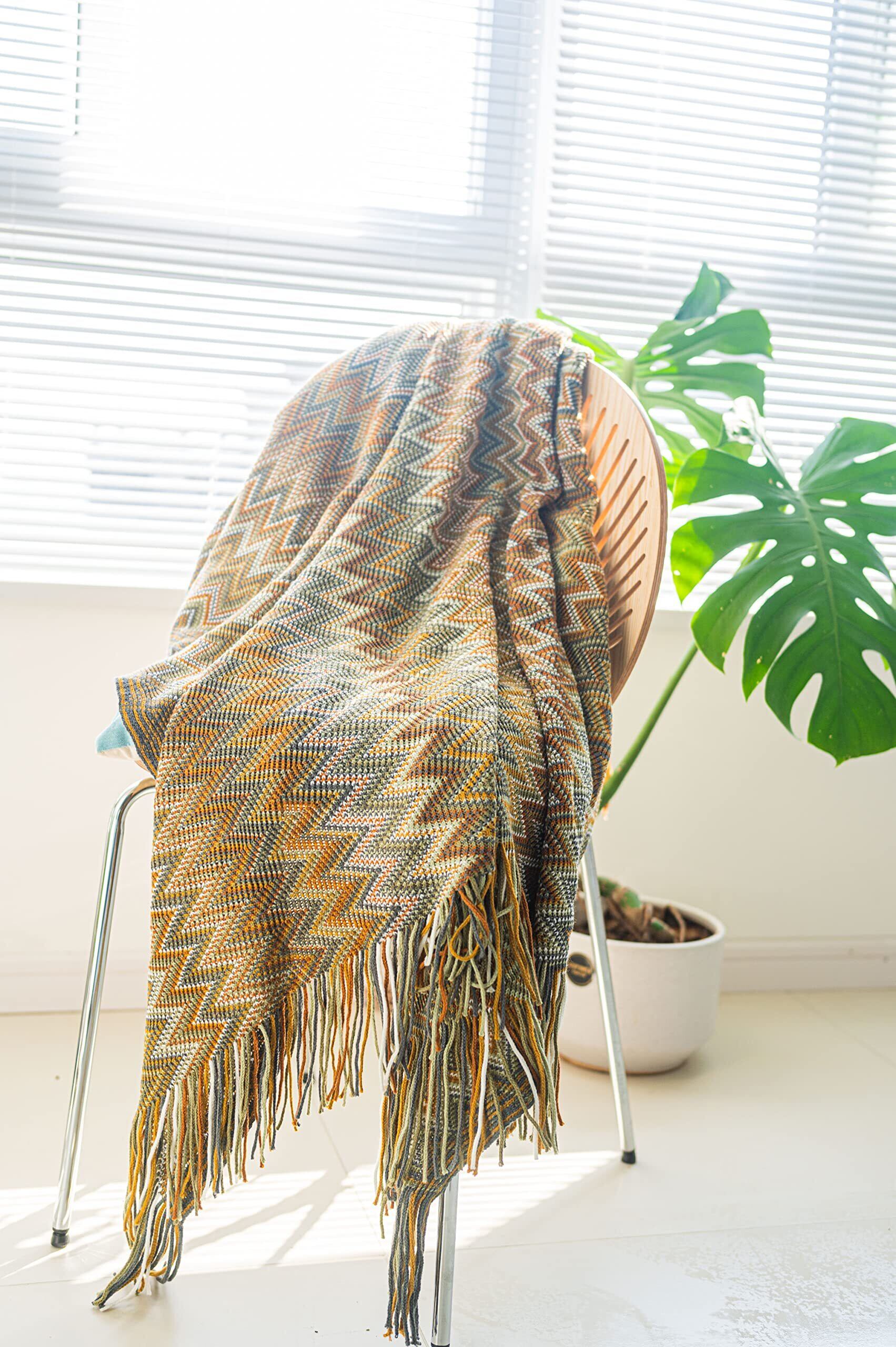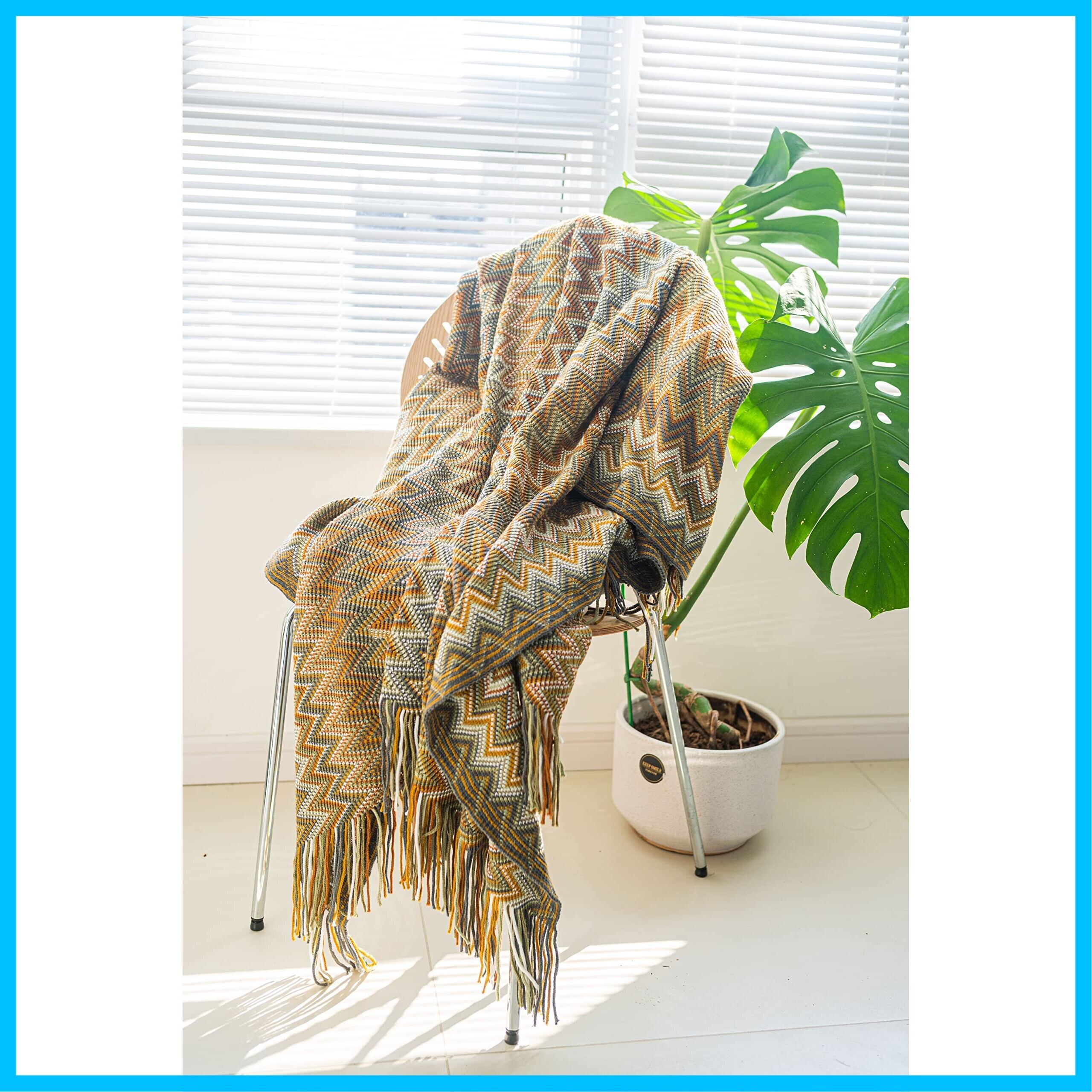 ブランケット 毛布 おしゃれ ひざ掛け 掛け毛布 大判 北欧 ニット ボヘミアン柄 肩掛け 着る毛布 プレゼント 秋冬用 洗える 防寒 エアコン対策 通年使用 フリンジ付き (黄色)
