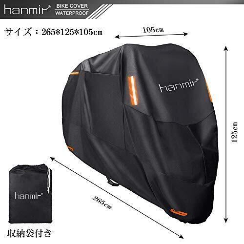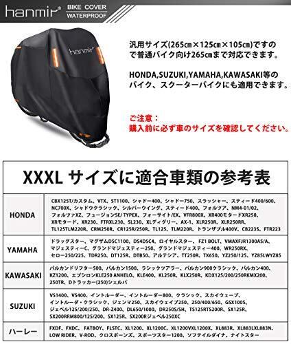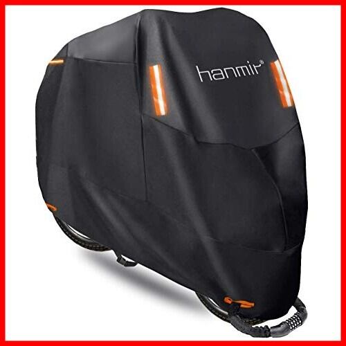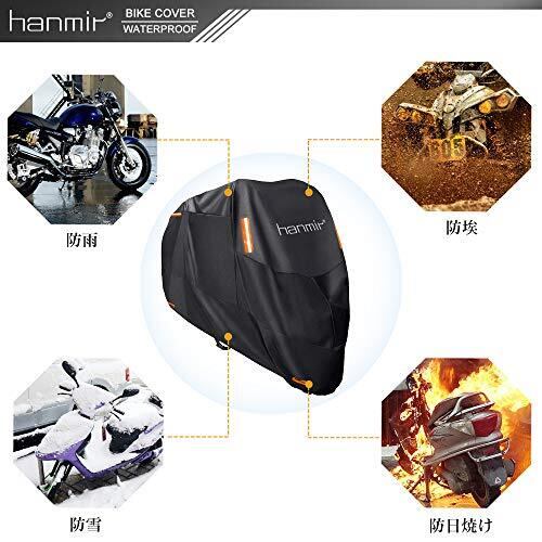 Hanmir バイクカバー 原付カバー 300D厚手 バイクカバー大型 耐熱 防水 撥水 紫外線防止 盗難防止 防風 防埃 防雨 防雪 265㎝まで対応 収納バッグ付き (XXXL ブラック)