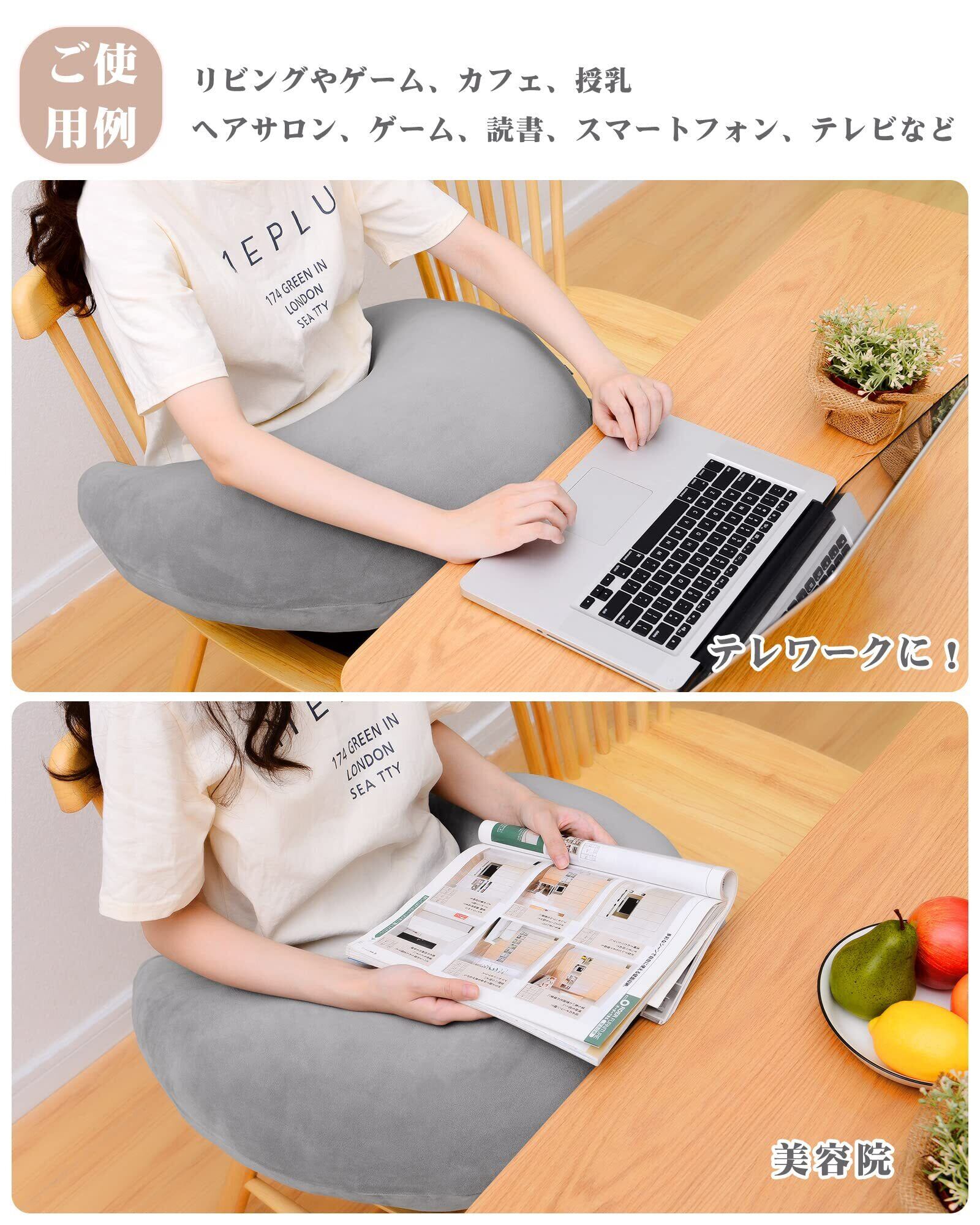 Baibu Home クッション もちもち ふわふわ 三日月型 膝上 肘置き 背もたれ ヘアサロン 読書 ゲーム クッション 授乳 テレビ 鑑賞 アームレスト サポートクッション カバー洗える