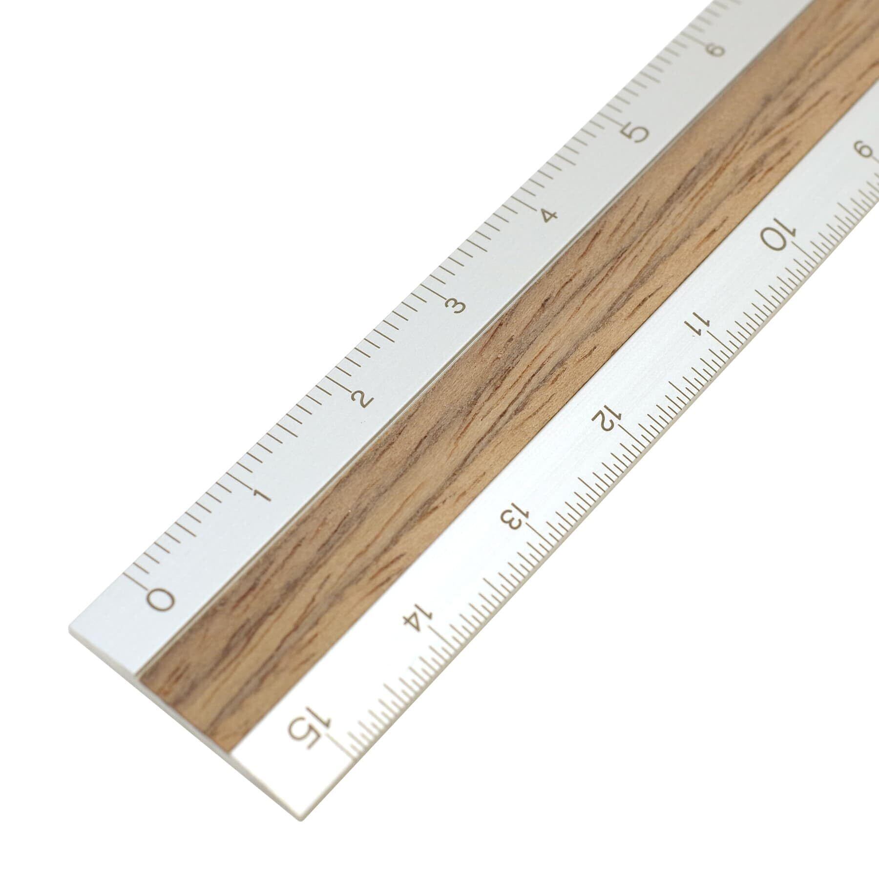 天然木とアルミ素材の融合から生まれた目盛りの消えない15㎝定規